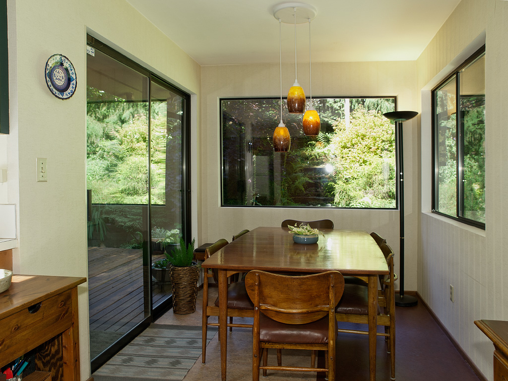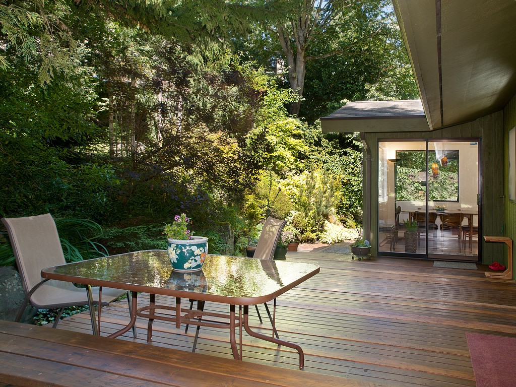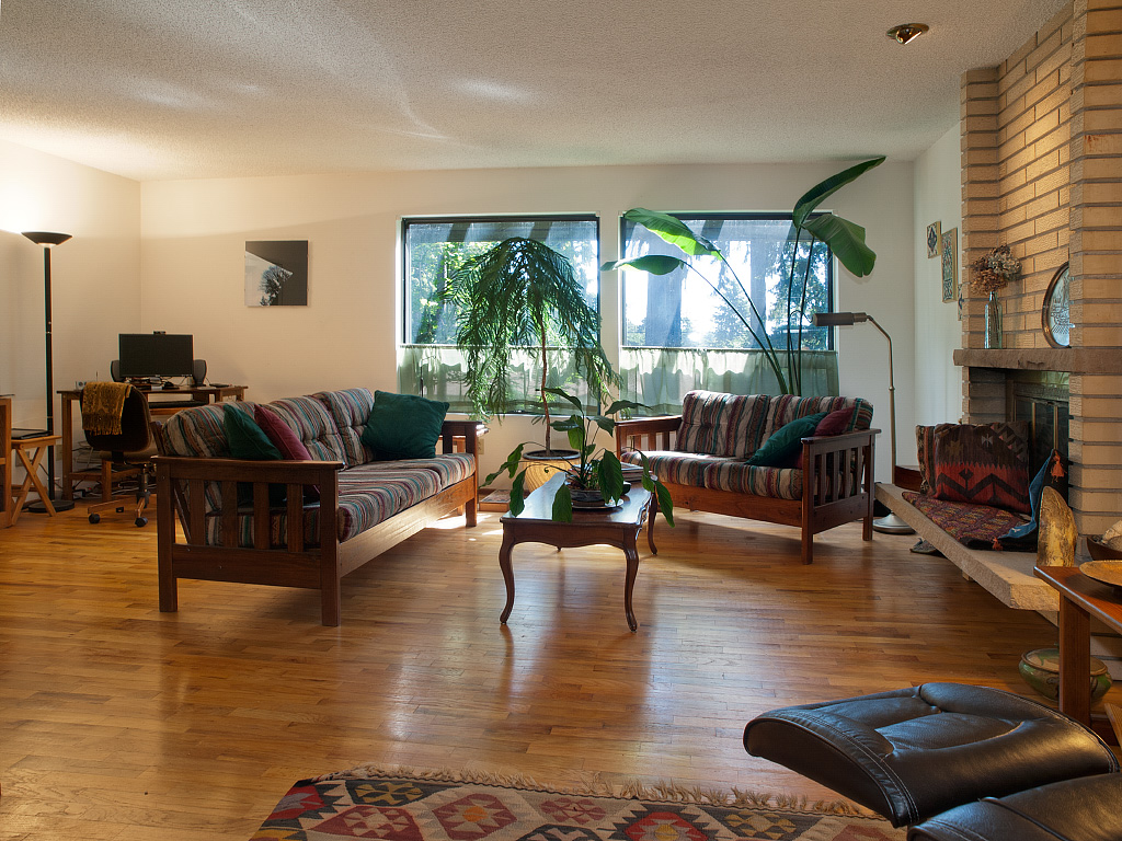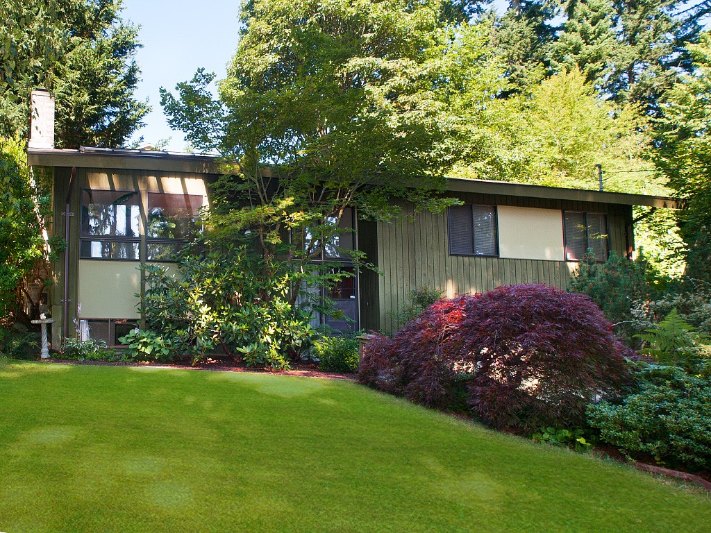 A unique and tranquil experience. Sited on a park-like private lane and surrounded by trees. Home boasts 3 bedrooms--possible 4th bedroom down, kitchen with skylight, marmoleum flooring and nook capturing the mature landscaped and terraced back yard, 2 3/4 bath, large rec rm, 2 fireplaces, double garage with extra space for workshop and more. Great access to shopping, buslines and highways--only 1.5 miles to I5, 2 blocks to Hwy99. A delightful home surrounded by natural beauty.