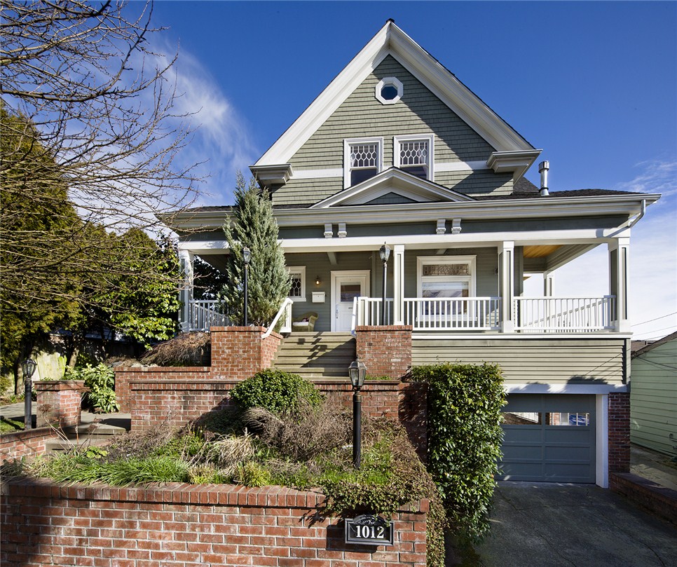 Beautifully updated Queen Anne home with Sound, Mountain & city views. Bright open floor plan has crisp white woodwork & maple floors. Expansive family room has built-in bookshelves w/library ladder, wine cooler & French doors to level back yard. Gourmet kitchen has concrete counters & high end stainless appliances. Master retreat has private view deck. Finished lower level has high ceilings, media room with wet bar & guest suite. 4 bedrooms; 4 baths; 2 fireplaces; office; attached 2-car garage.