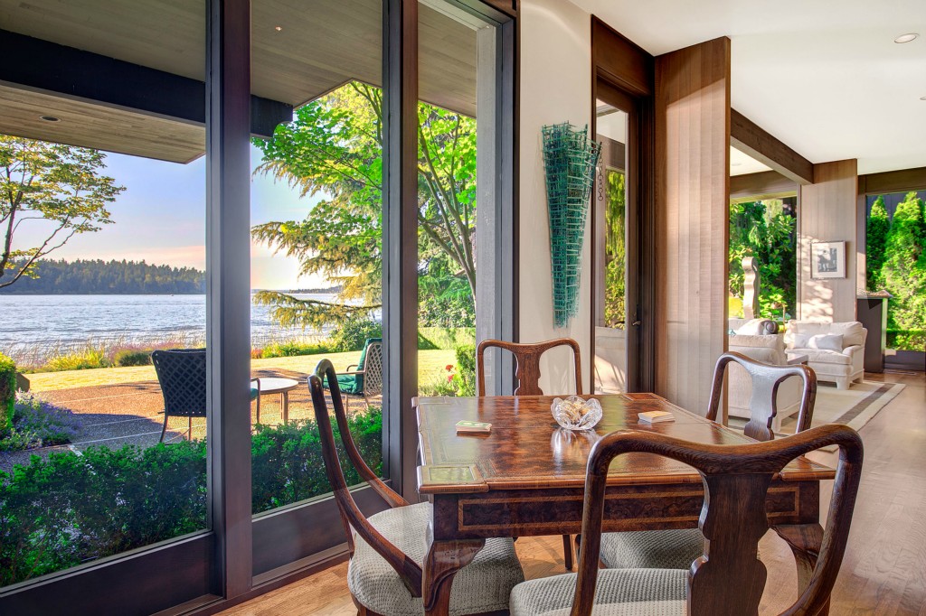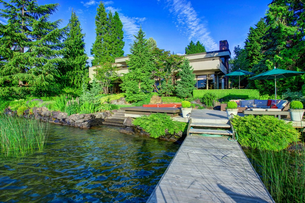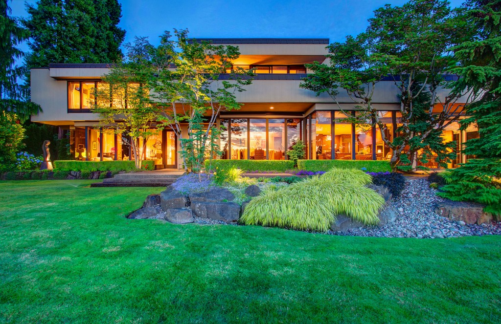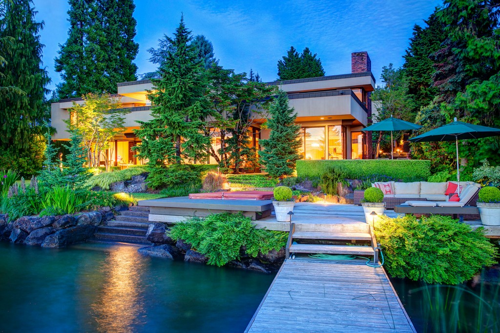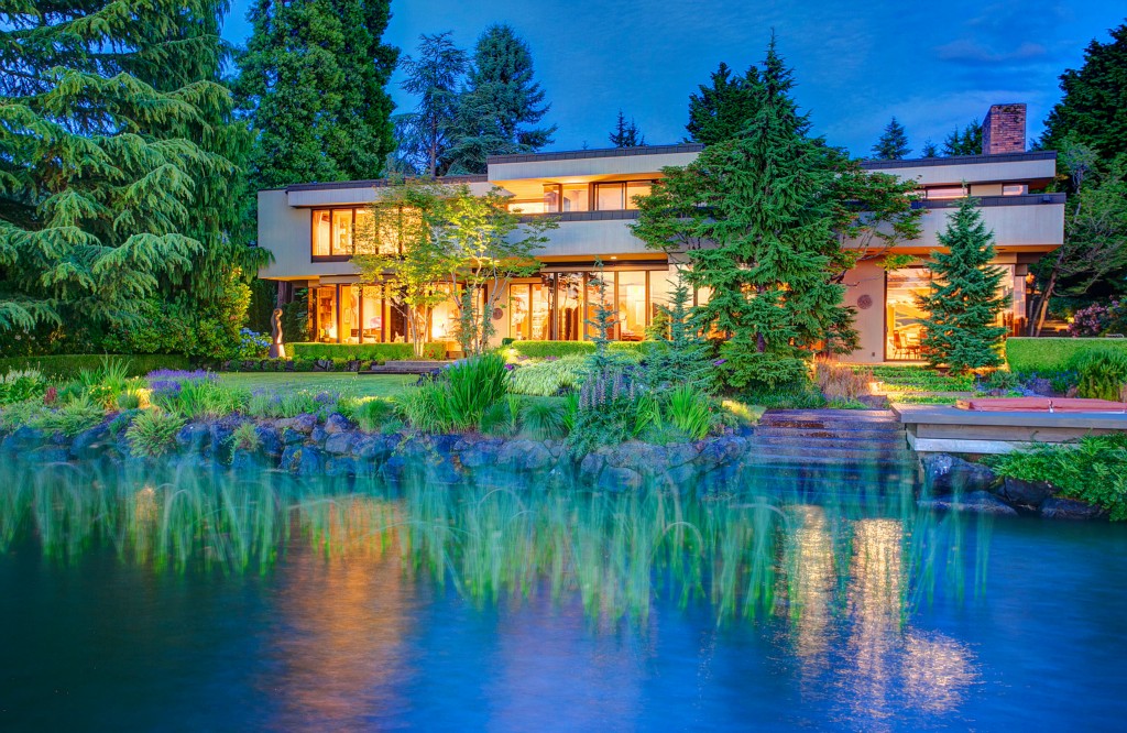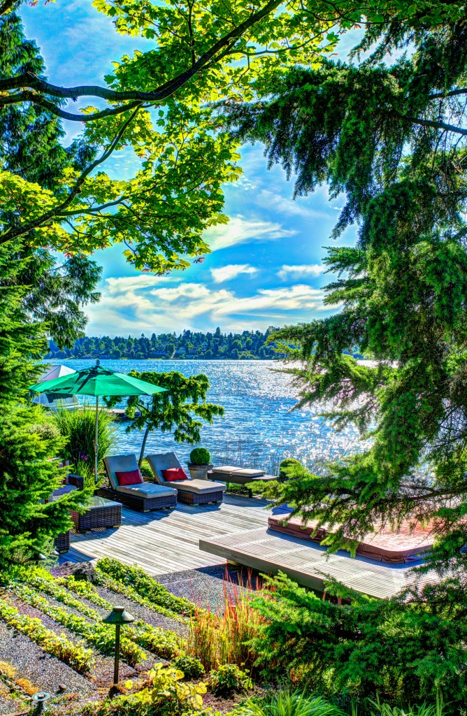 Northwest Romance...design strategies at every turn...brimming with art, stretching imagination...respecting wildlife habitat... intensifying the views. An outdoor living theatre of water, treasured gardens, sun and clouds, decks and substantial dock. The journey is not an attitude but a lifestyle of stories. Mitered windows give views freedom to impress. Each sunset a new memory ~ ripples on the lake an accompaniment. A home of comfort and confidence with the genius of panache.