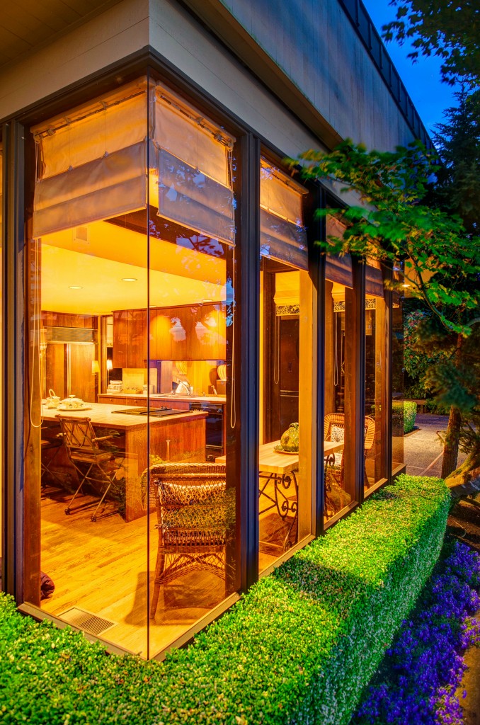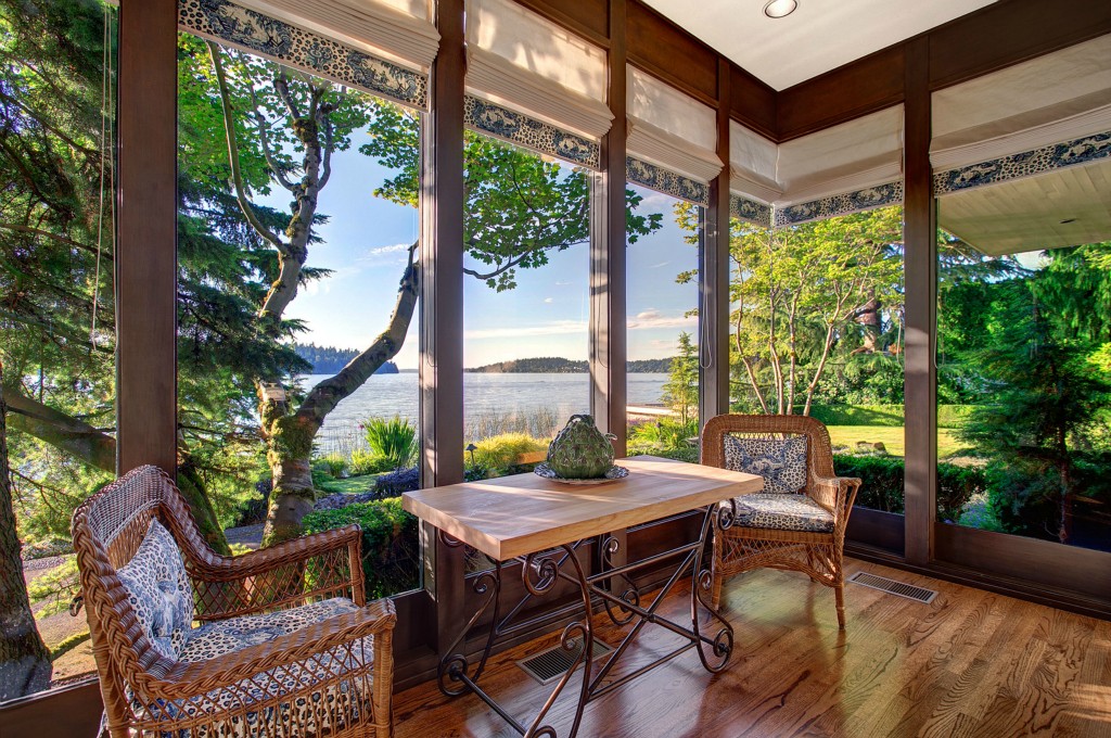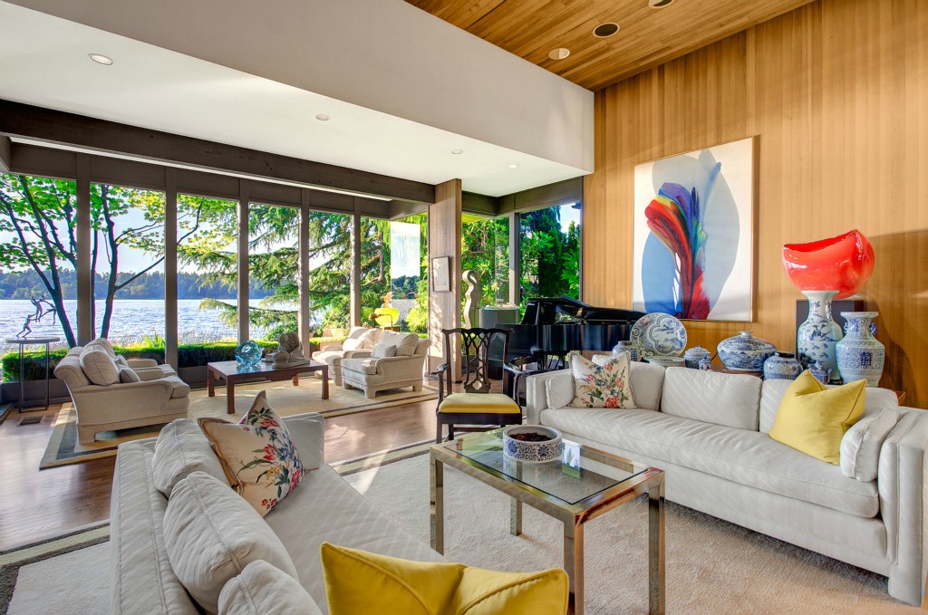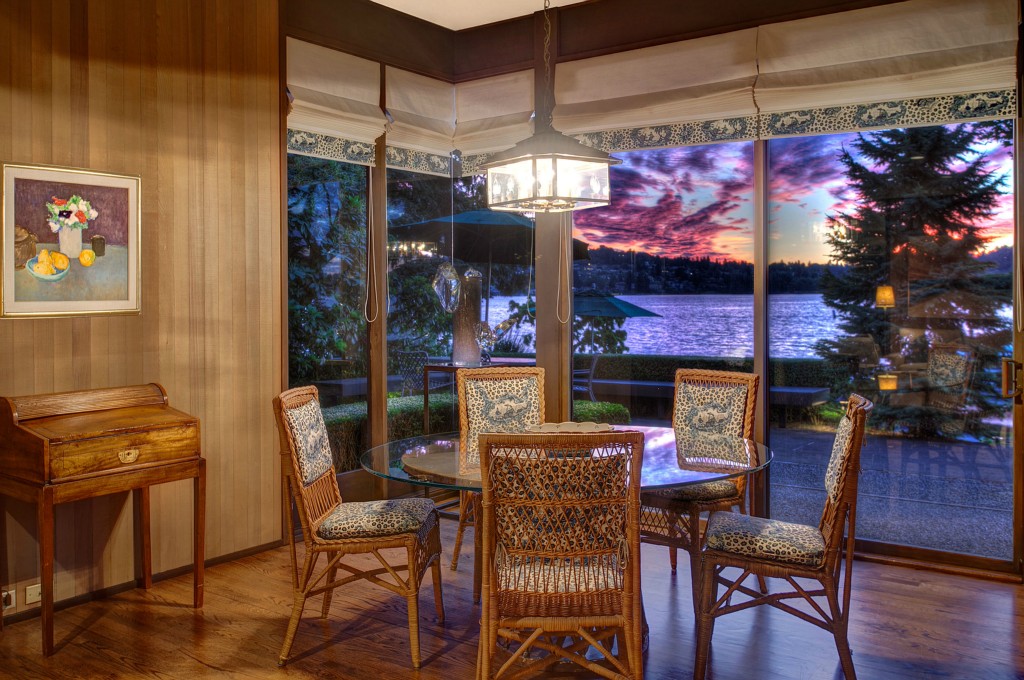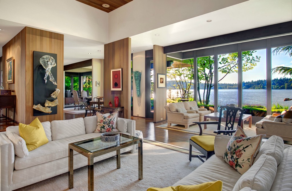 Northwest Romance...design strategies at every turn...brimming with art, stretching imagination...respecting wildlife habitat... intensifying the views. An outdoor living theatre of water, treasured gardens, sun and clouds, decks and substantial dock. The journey is not an attitude but a lifestyle of stories. Mitered windows give views freedom to impress. Each sunset a new memory ~ ripples on the lake an accompaniment. A home of comfort and confidence with the genius of panache.