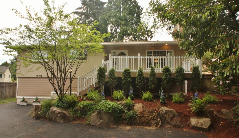 WOW! Beautifully remodeled hm feat striking kitchen (remod 2013) w/eating area w/new: Espresso toned solid wood cabinets, SS appliances, bamboo hrdwds & lighting. Two spacious decks. Downstairs could be set up as a MIL—Fam Rm, 3/4 huge bthrm, Gas Fireplace, Bdrm & extra finished room w/own entry. New interior neutral paint, marble shower surround in hall bthrm, plenty of off street parking. Driveway re-paved. Don’t hesitate to bring Buyer - Mature landscaping buffers road sound. New Roof coming!