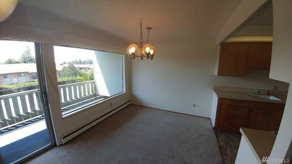 Enjoy views of the Sound and the mountains on your large balcony in this super clean, 2 bedroom 1 bath condo in downtown Edmonds. Large living room with new carpet throughout. No stairs from your parking space to the unit. Wonderful location walking distance to shops, restaurants, commuter routes, and shopping.