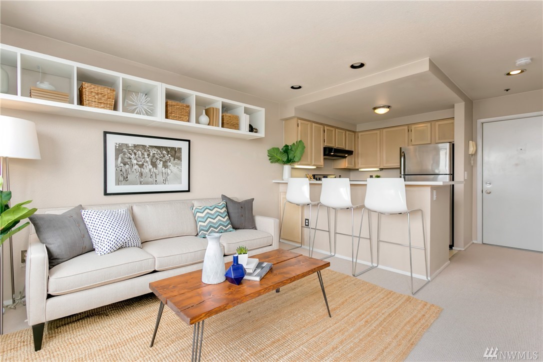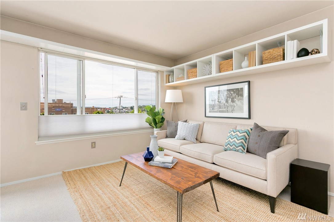Turn-key condo in the heart of Eastlake, one of Seattle’s most desirable & walkable neighborhoods. A true 1-bedroom, top floor unit w/sweeping views of Lake Union, Olympics, and Space Needle! Functional floor plan, filled w/natural light, updated appliances, in-unit washer/dryer, & 1 car parking plus storage in secured garage. Well-maintained, pet-friendly building, located on quiet street minutes to restaurants & coffee shops. 1 block to bus line directly into South Lake Union and Downtown!