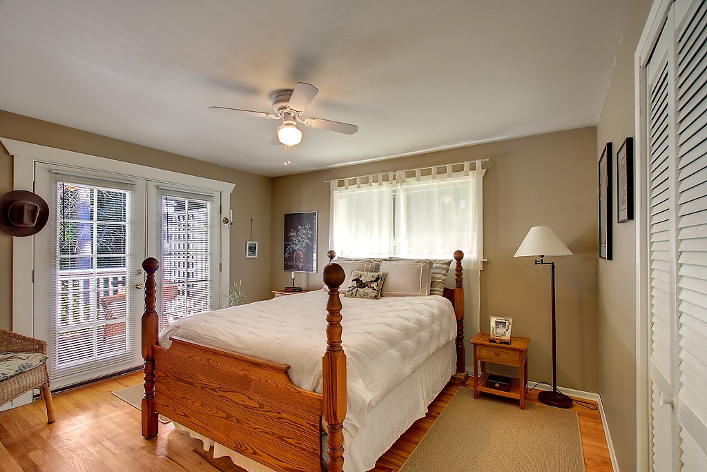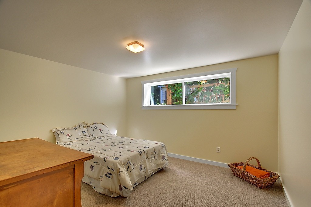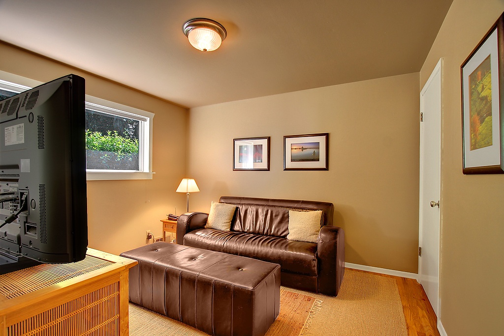 Impeccably maintained home down a dead end street in peaceful North Beach. Step inside to this solid mid century with open living/dining rooms, fireplace and shiny hardwood floors. The spacious kitchen has granite counters and casual dining space. Out back the private deck offers a tranquil setting to relax amongst towering evergreens overlooking a ravine. 3 comfortable bedrooms & 1.75 tidy baths. Huge lower level rec room, office space & tons of storage. Intelligent system upgrades throughout.