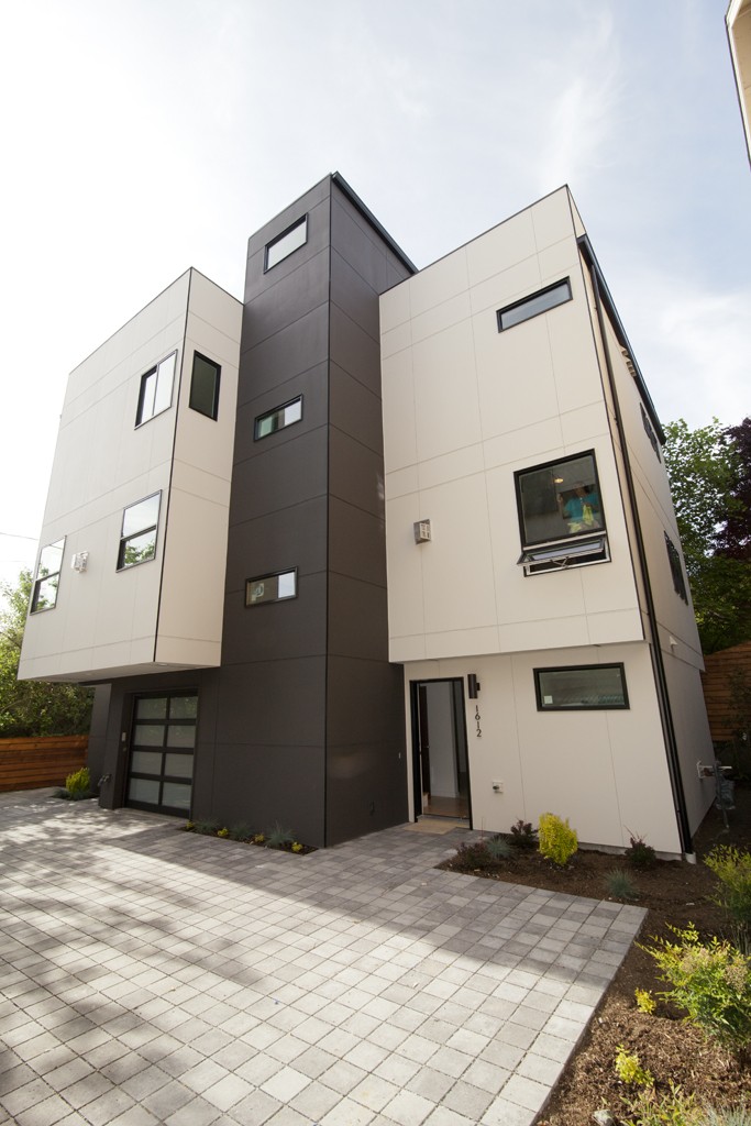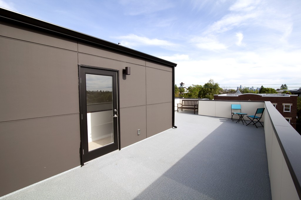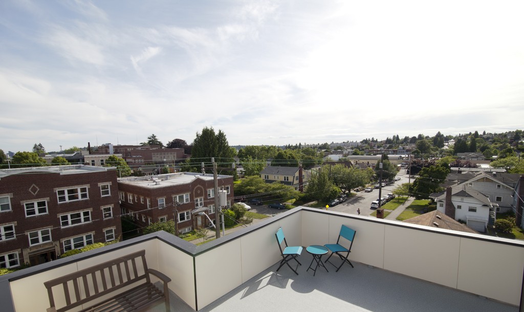 3 floors of open, bright living and sweeping views from 500 sq. ft. rooftop deck! This 2013 Build Sound construction boasts hardwood floors in main living areas, Caesar stone countertops, GE Cafe Series stainless appliances, 3 beds and 2 baths in approximately 1600 sq. ft. Enjoy all of Wallingford's nearby amenities and easy access to US 99 and I-5. High efficiency heat and on-demand hot water, wired for highspeed internet. 2 pkng spaces. Modern city living at its best! Buyer to verify all info.