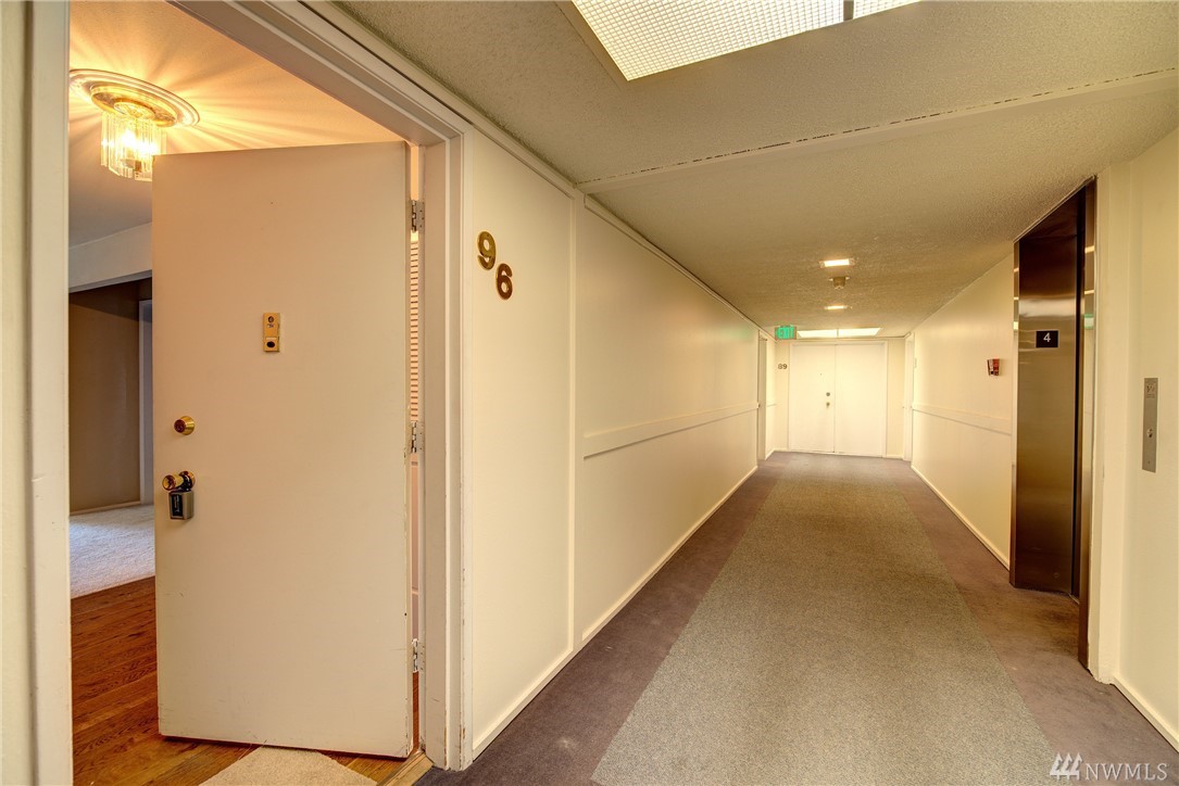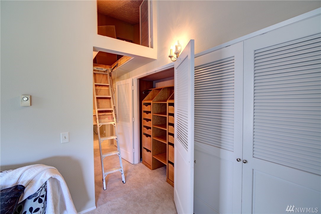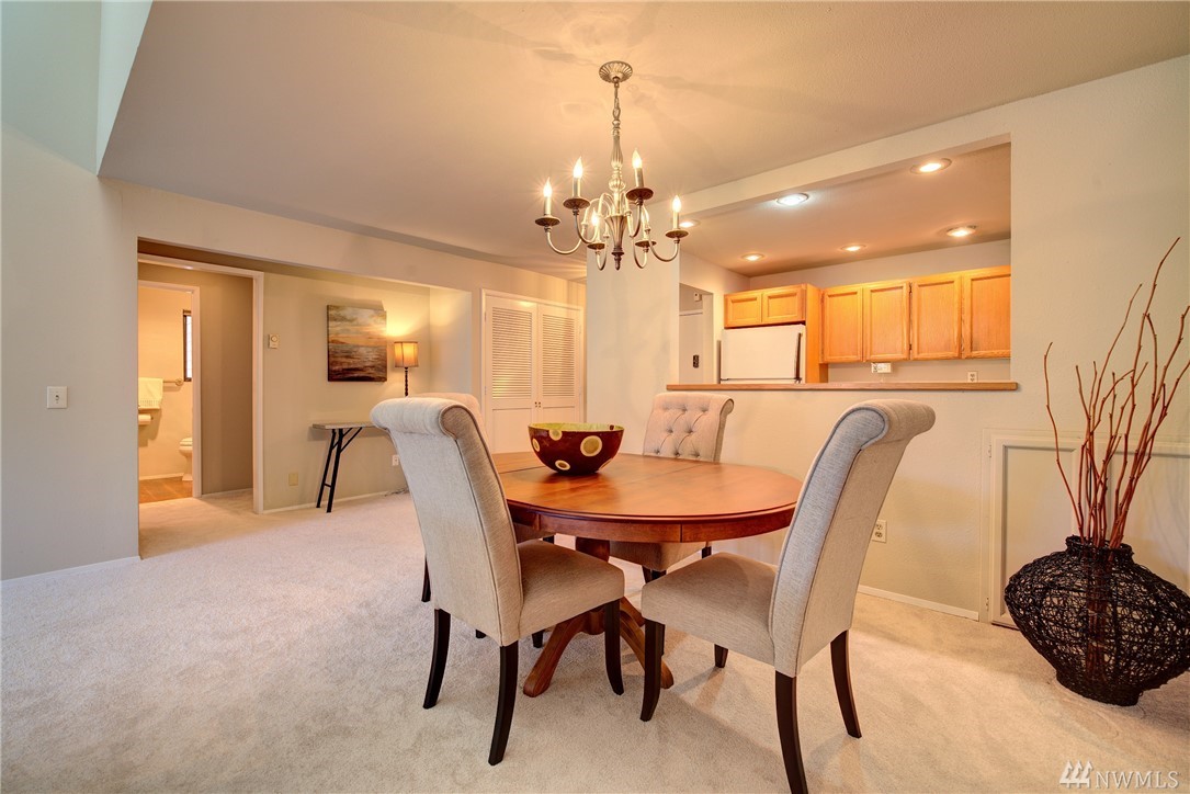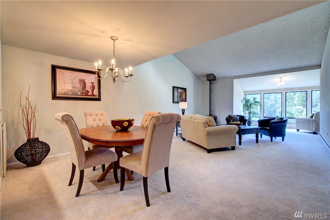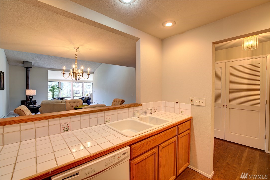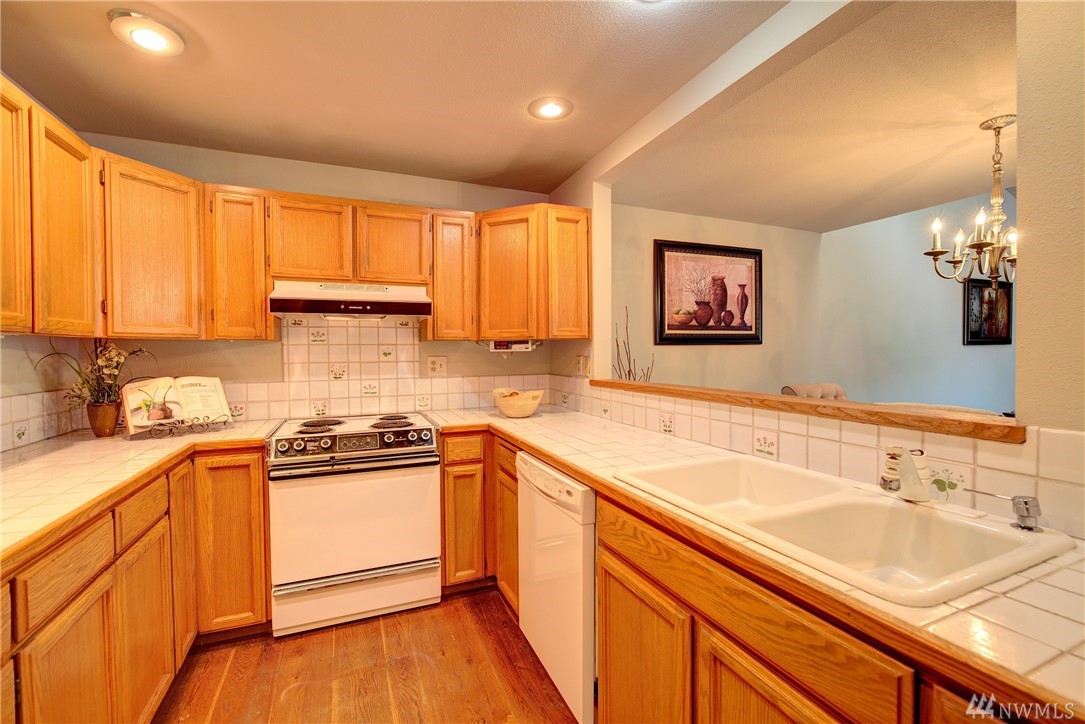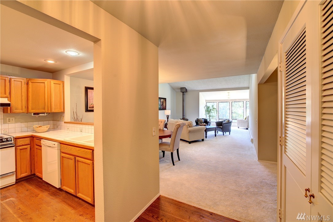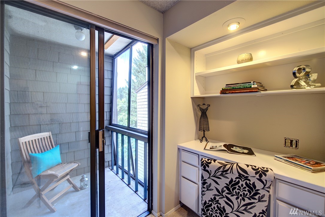 Enjoy Serene Lake Views from your living room in this large top floor condo, mins from Microsoft & Google. Kitchen w/ tile backsplash, hardwoods & eating bar. Open concept living & dining rm with vaulted ceilings, expansive windows & wood burning stove. Repainted & new carpet throughout. Vaulted ceilings continue into Master which features spacious closets w/ built-ins, loft & en-suite. Large 2nd bedroom w/ balcony & built-ins. Gated community w/ clubhouse, pools, tennis courts & fitness center.