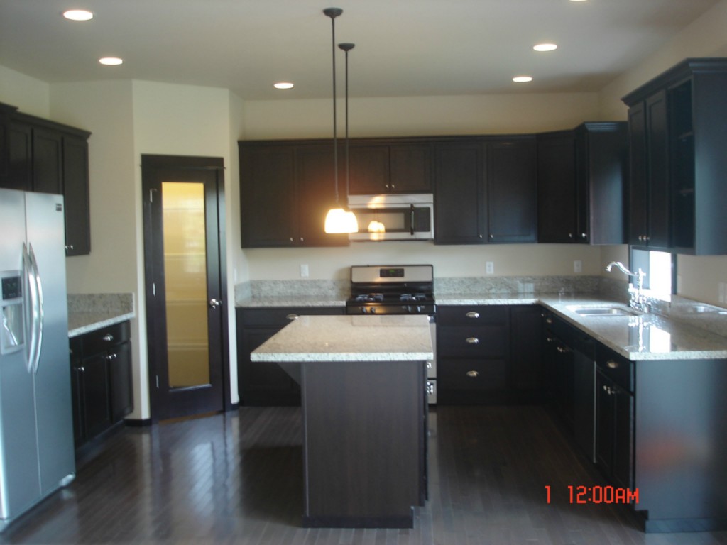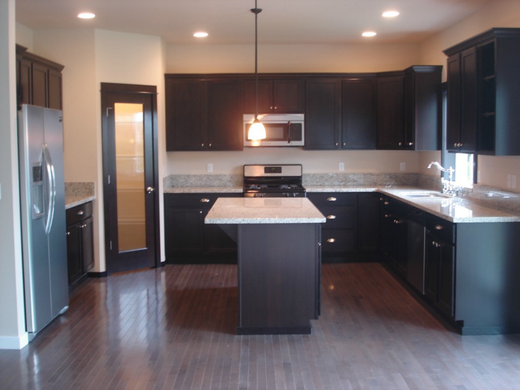 Extensive solid hardwood floors, wood mantel fireplace & slab granite kitchen