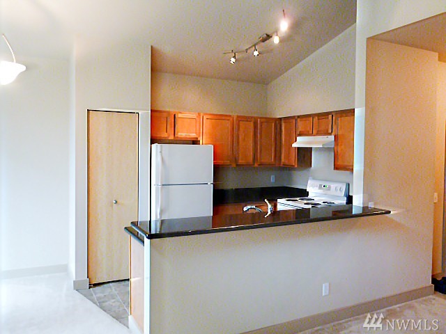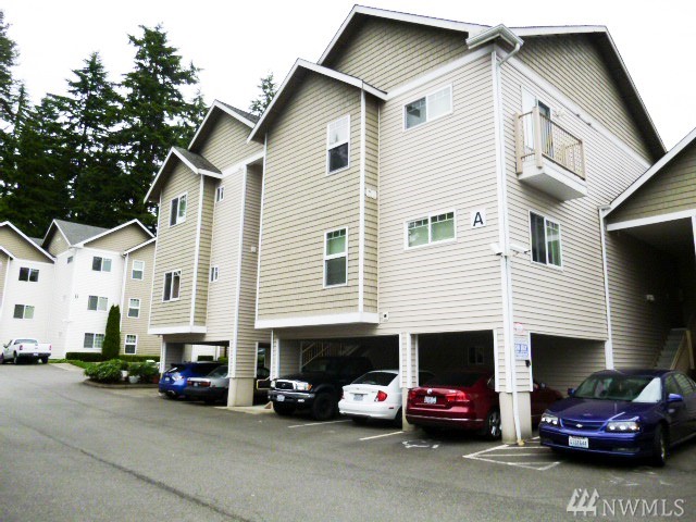 Excellent Location! FHA Approved. Great community tucked away from the hustle of Evergreen Way and adjacent to the Everett Golf and Country Club. Top floor unit with vaulted ceilings! Features include slab granite counters, all appliances including washer and dryer. Master bath. Electric fireplace.