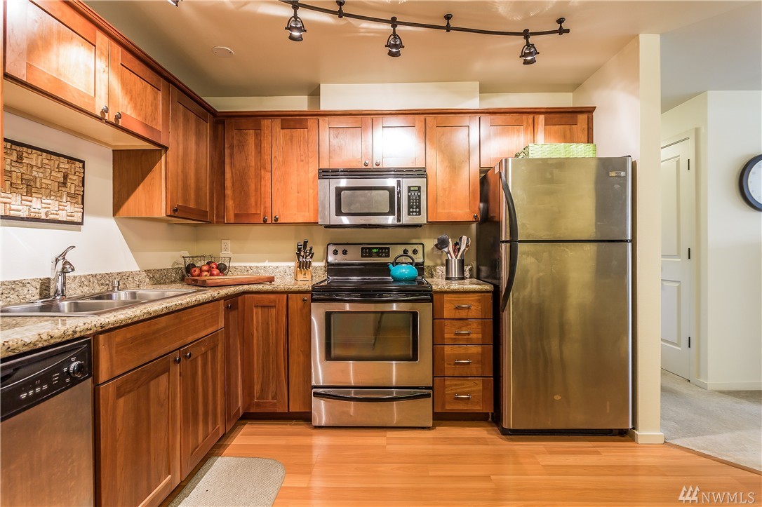 Fantastic downtown Woodinville 2 Bed/1.5 Bath model unit condo resale! Amazing opportunity to own 1 of 7 condo units originally sold in Patagonia Village. Location can't be beat! Across from Park & Ride, and just a block from shopping, restaurants, & more! This impeccable open floor plan boasts: a designer kitchen w/ eating space; living room w/ slider to private patio & green space; master bedroom w/ walk-in closet & attached bath; additional bedroom; & 1 carport space! Cash only; no financing.