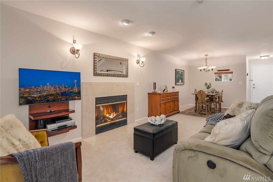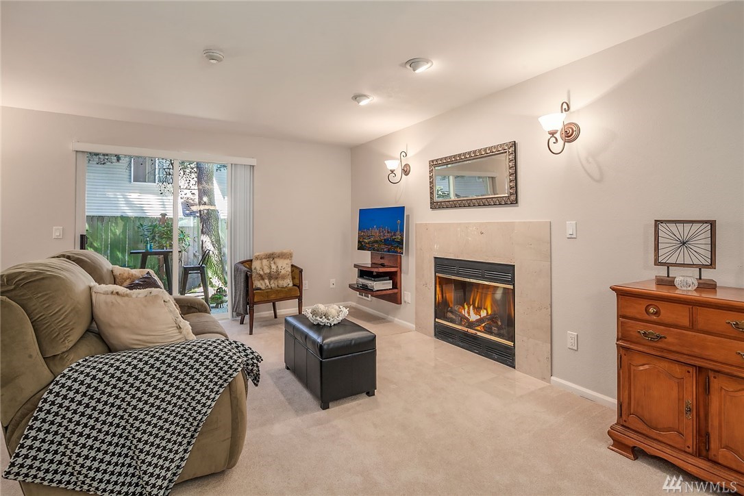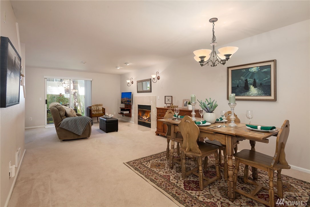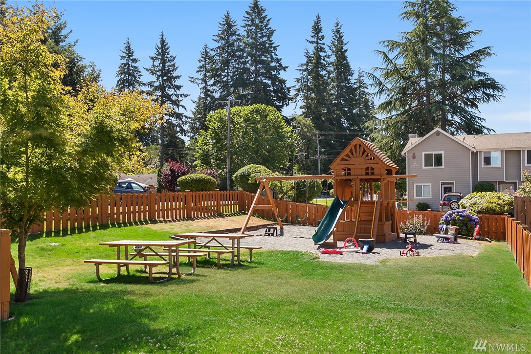 Charming 2 bedroom 1.5 bath townhome style-condo located in an ideal Mountlake Terrace location close to freeway access & amenities. Nicely updated w/gourmet kitchen w/cherry custom cabinets and newer appliances. Spacious living & dining room w/wood-burning fireplace w/marble surround. Full size washer/dryer & lots of storage! Spacious master bedroom w/double closets. Large 2nd bedroom w/lots of light. Assigned parking, cute private community park/picnic area for play. No rental cap! End unit!