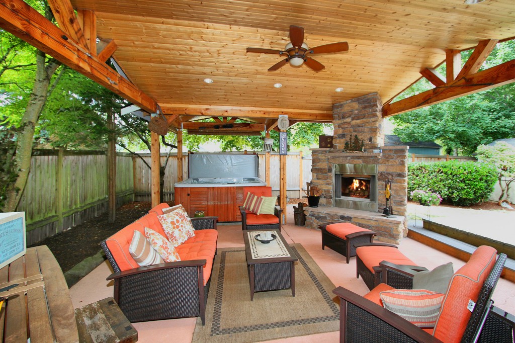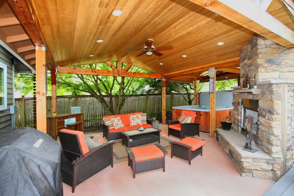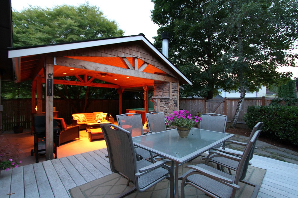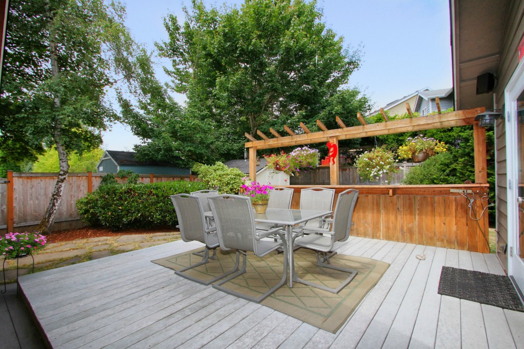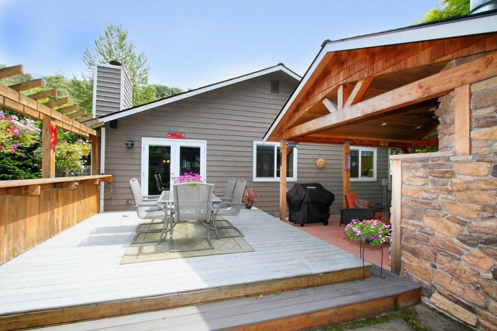 Very well maintained home in Meadow Creek park with newer windows and roof, beautiful bright kitchen with ss appliances, large master with walk-in closet, spacious family room with fireplace that leads out to the large private back yard and deck and features an out door living area with open vaulted ceilings, large rock fireplace and jacuzzi in the North Shore School District.