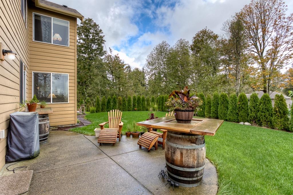 Beautiful Murray Franklyn resale in Trossachs! This home is located on a quiet cul-de-sac that backs up to a greenbelt. Features include: open floor plan, A/C, and wooden blinds. Eat-in kitchen contains slab granite, SS appliances & a large island w/ wet bar. Upstairs boasts 4 BR including generous master w/ spa-like bath, huge bonus room & laundry. Enjoy a 3 car garage, tranquil backyard & add'l outdoor space to the left of the property! Close to parks, trails & Cascade Ridge Elementary!