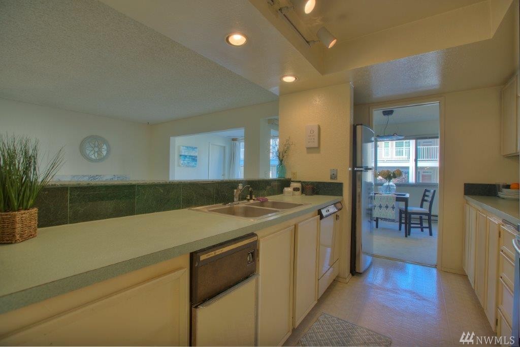 Steps away from the beach in the heart of downtown Des Moines. This light and bright condo has expansive, open living spaces and large picture windows. This home has 2 bedrooms and 2 bathrooms, living room, formal dining room and sun room. The kitchen overlooks the living areas and the master has it's own attached bathroom. Ample storage with multiple storage closets in the home, storage room and individual garage in the basement below. Game room, community room and private gated entrance.