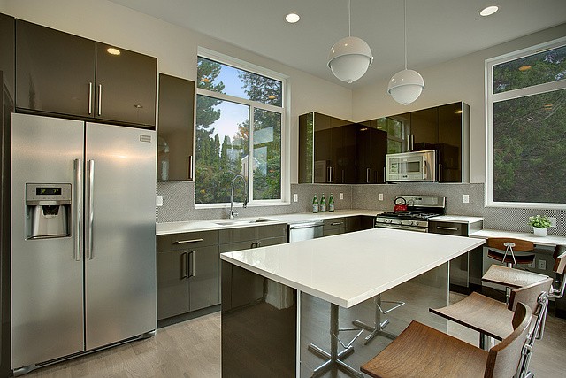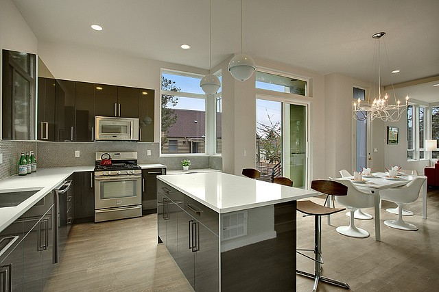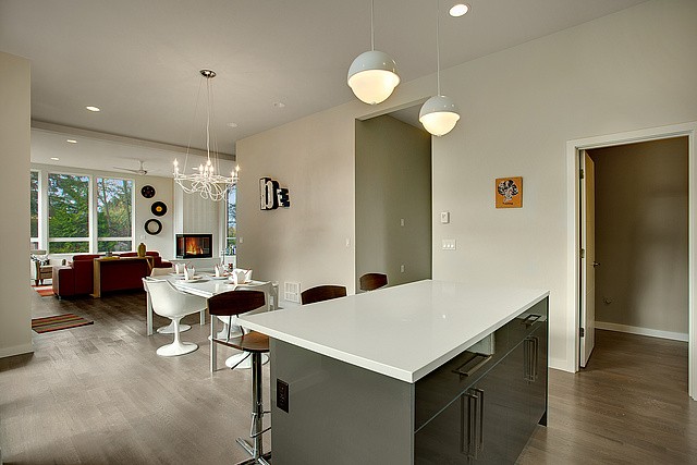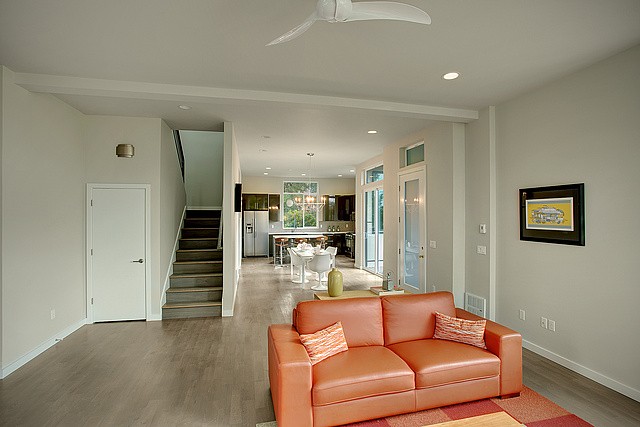 Beautiful, Modern style, New Construction, 2 story, 4 star "Built Green Certified". Large spacious rooms with light Southern exposure. Polished Iron staircase, eclectic fixtures, slab granite counter tops. Stainless steel appliances. Polished concrete floor entry. Upstairs partially covered deck for year round use w/territorial view. Yard w/landscaped gardens, deck off entry & tile walkway. Large attached garage. Great location. Walk to shops and restaurants. Alley access with parking.