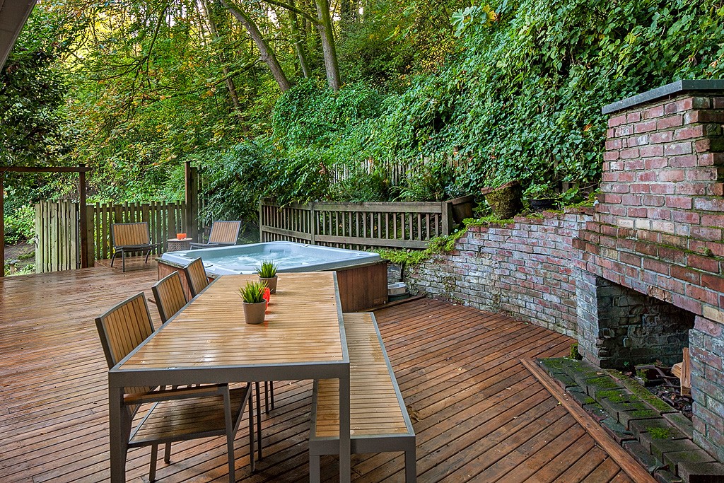 Surrounded by a lush greenscape, this storybook 1930's classic brick home defines charm. Highlights include: 3 bedrooms/1.75 bathrooms, wood burning fireplace, hardwood floors, barrel ceiling living room, granite kitchen w/ subzero refrigerator, large flex/media room w/ projector & lots of storage. Entertainment space expands outdoors w/ an incredible outdoor living room, fireplace, spa and bbq area. Professionally landscaped w/ sprinkler system & garden lighting. Minutes to UW, downtown & 520!