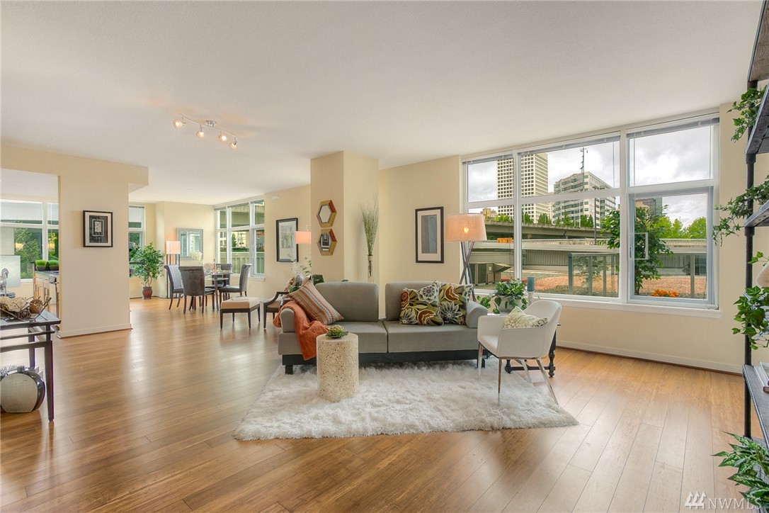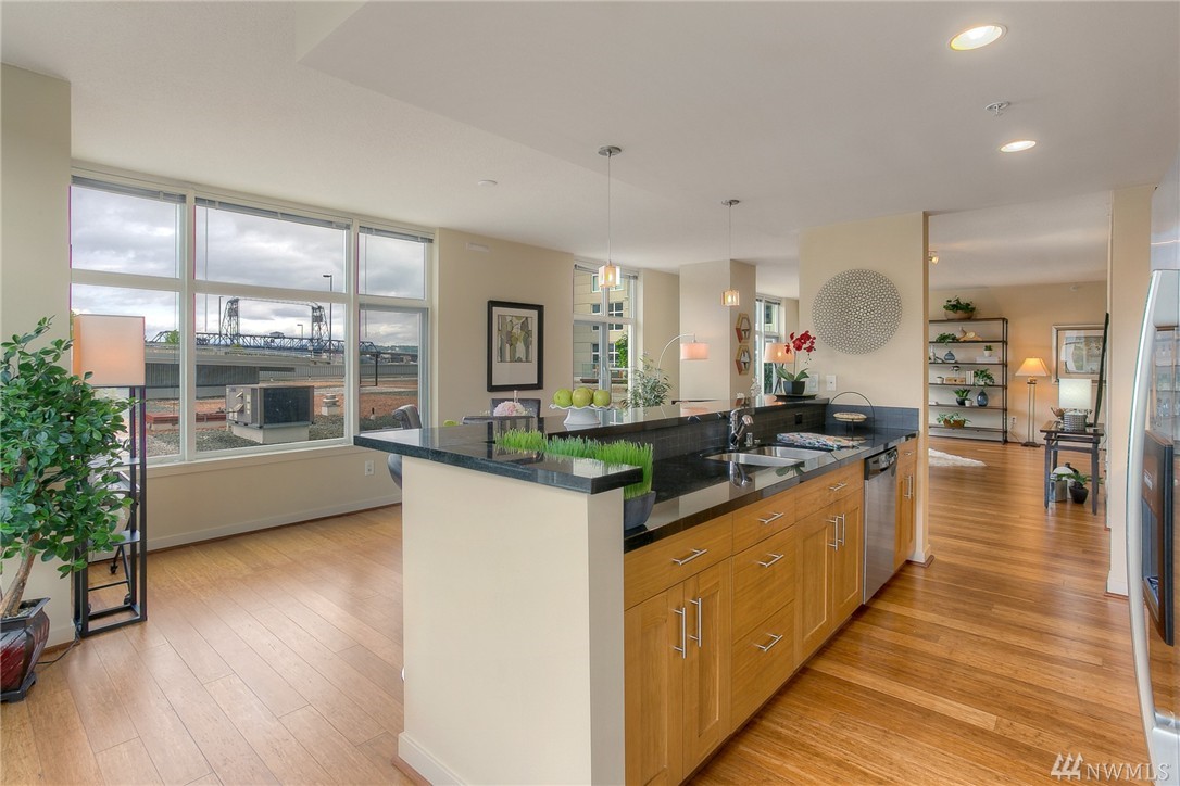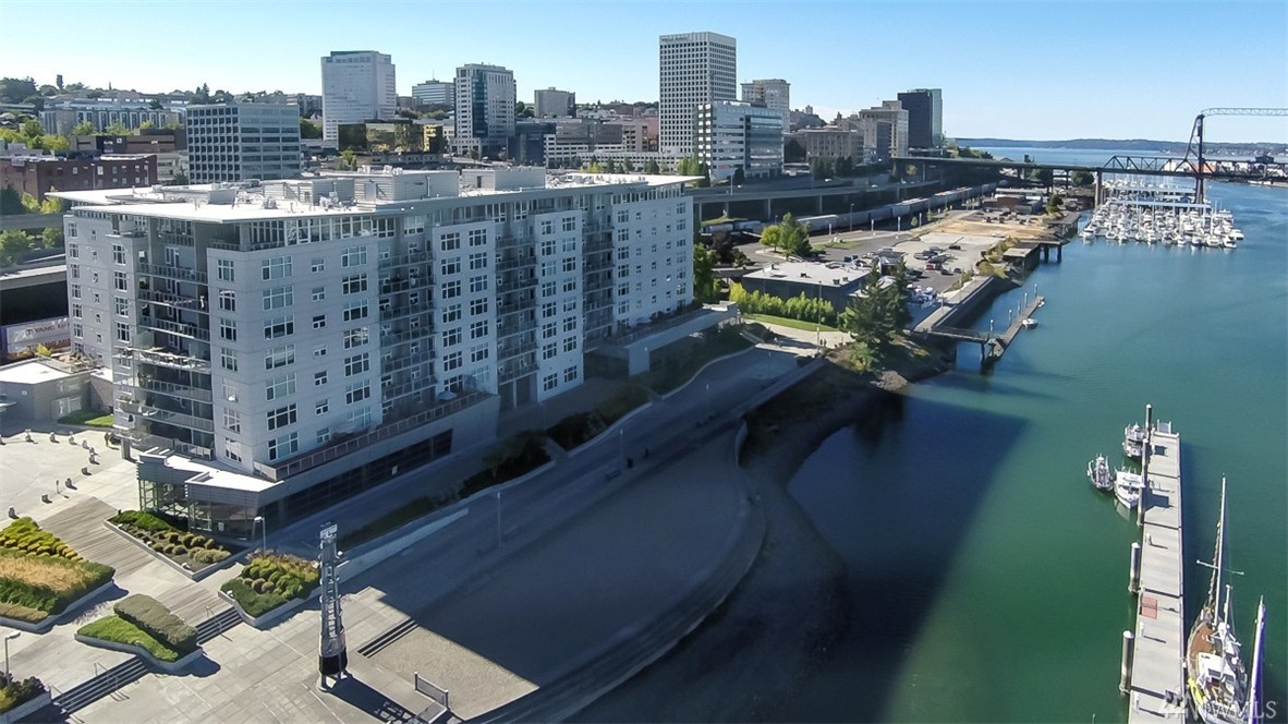 Finally, a super-sized condo at the Esplanade can be yours. Enjoy awesome city views through wall to wall windows in this corner condo with two covered decks. Freshly painted and meticulously fine tuned for you - move in now and enjoy the beautiful summer. Stroll along the Thea Foss Waterway, dine at one of five restaurants only minutes away. Visit world class museums, join a dragon boat team, take sailing lessons. I-5 is a minute away. Downtown Tacoma beckons you with entertainment & shopping.