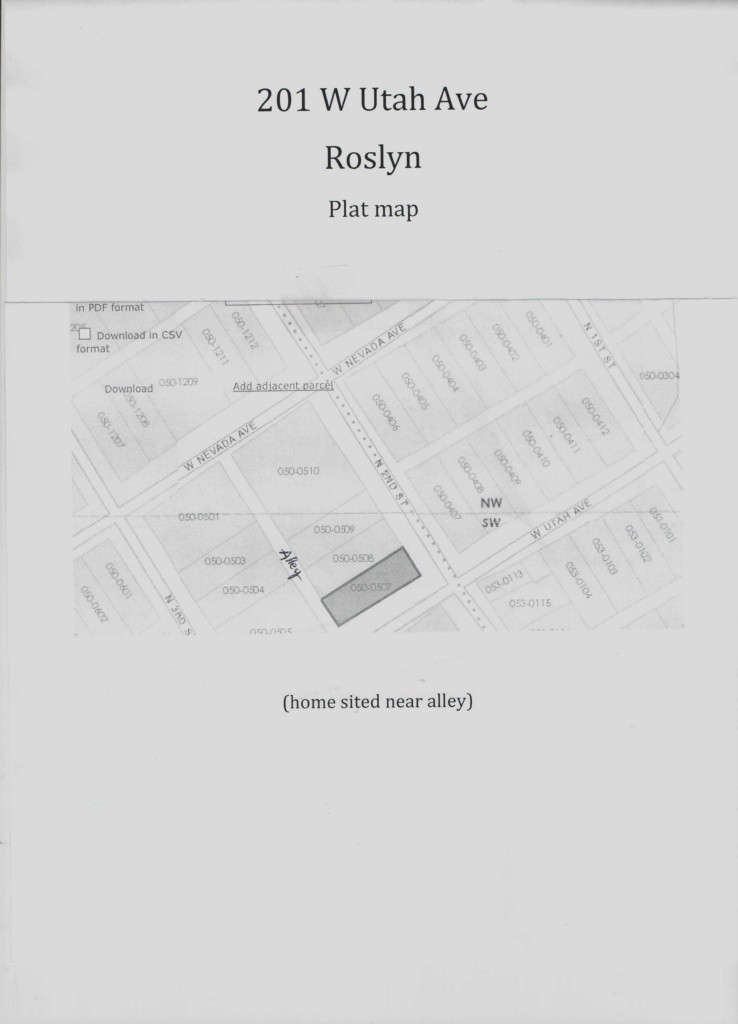 Quaint house in downtown Historic Roslyn. Large corner lot with a detached garage and storage under. Large kitchen with nook adjoins large living/dining room. Unfinished basement with utilities and shop with outside access. Home is being sold as is with owner making no repairs. Very close to Churches, restaurants and shops. A unique opportunity!