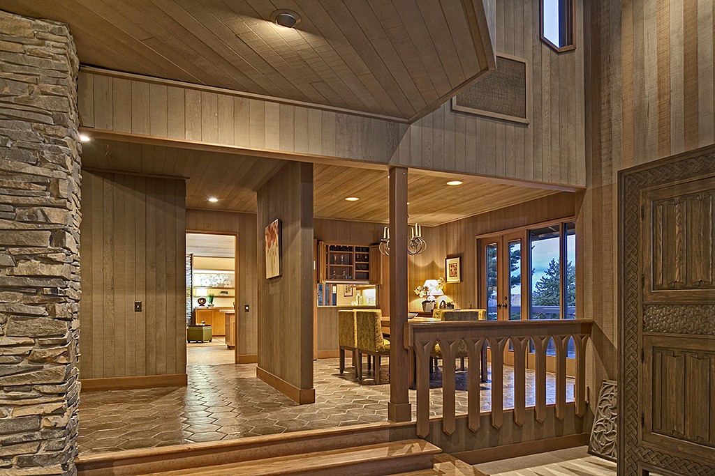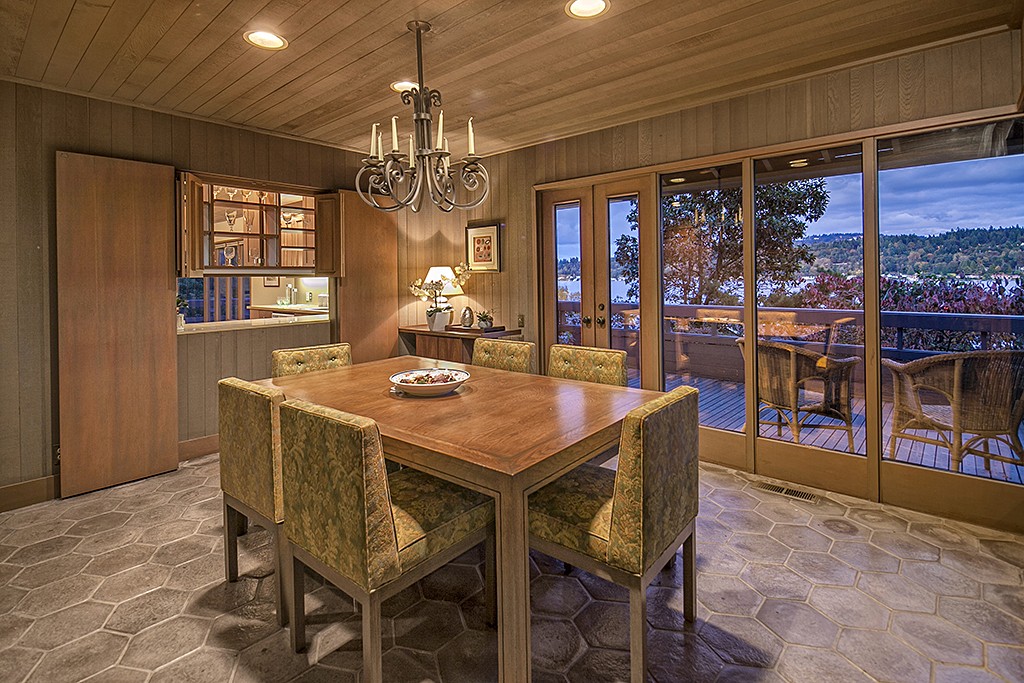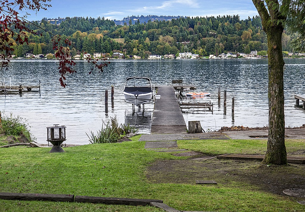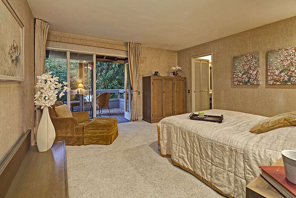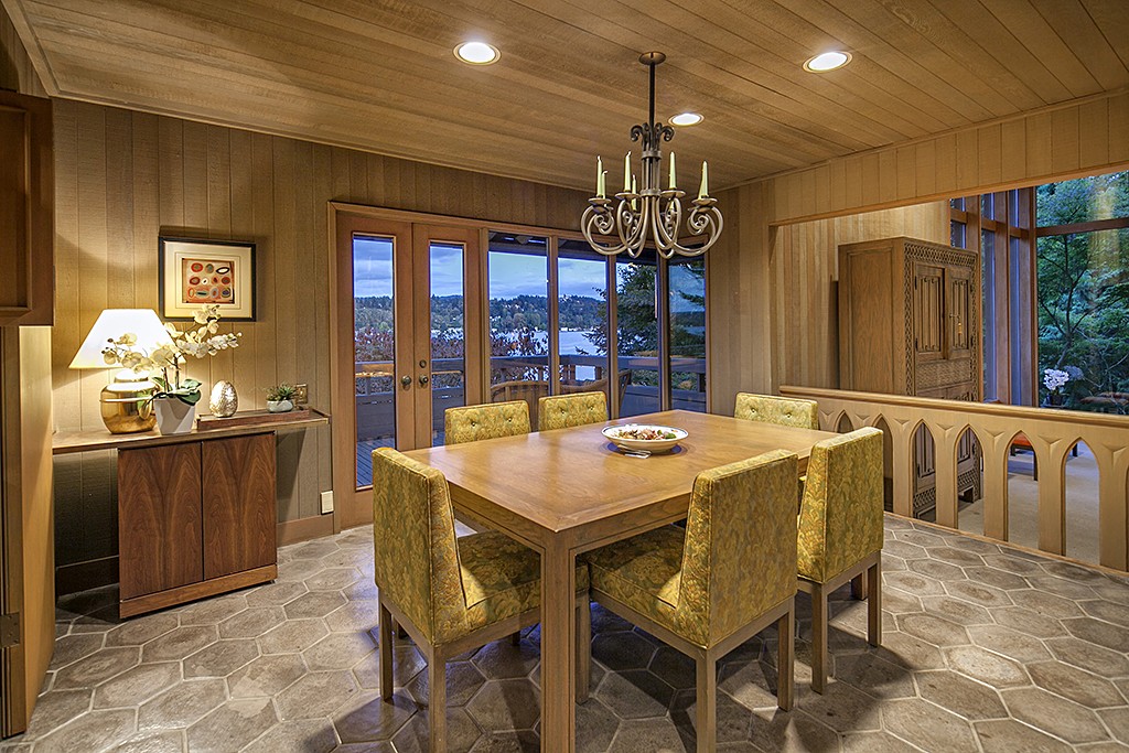 The mark of Ralph Anderson… whose designs accompany the land without dominating it. Signature windows, vertical emphasis, capturing nature’s veins of color. Supported by Chittock’s gardens, profiling a statuesque prominent 1965 showcase. 4 fireplaces. At the foyer, the center spine bends up to the fire-lit library. Sweeps of lake views unfurl ~ bringing a life of greens inside ~ a compliment to the pure cedar interiors. 1/5 share 50’ remarkable, sunlit wade-in beach…designated moorage.