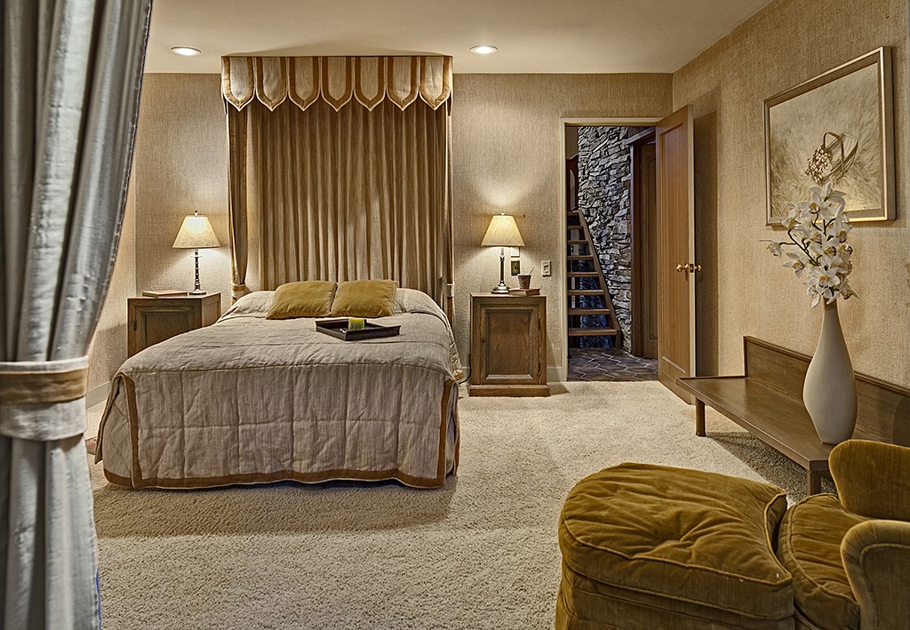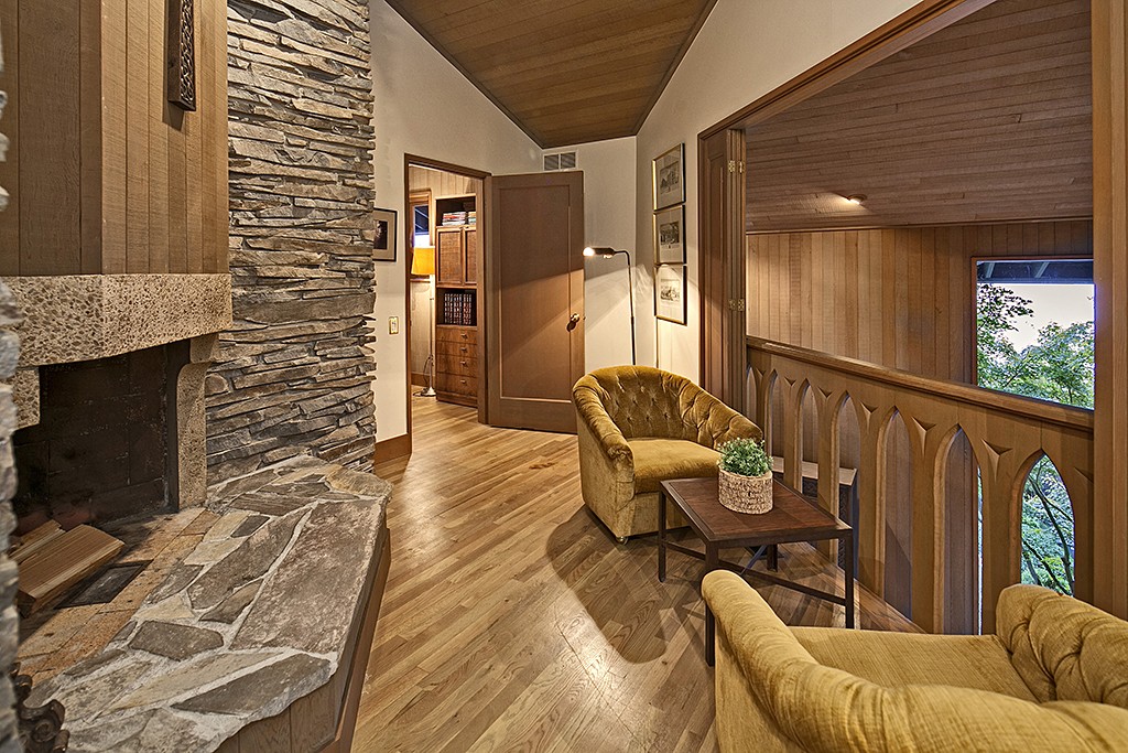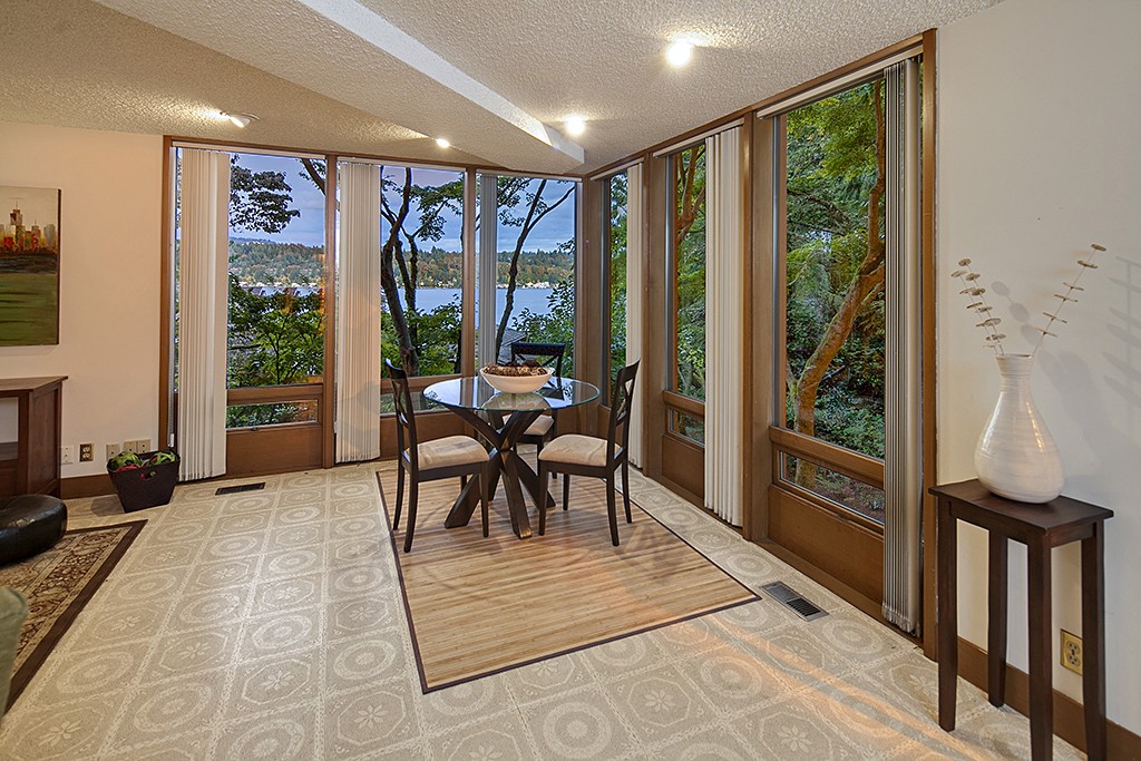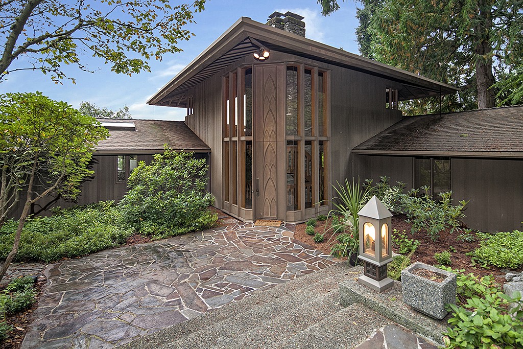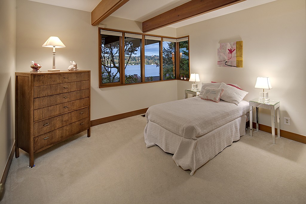 The mark of Ralph Anderson… whose designs accompany the land without dominating it. Signature windows, vertical emphasis, capturing nature’s veins of color. Supported by Chittock’s gardens, profiling a statuesque prominent 1965 showcase. 4 fireplaces. At the foyer, the center spine bends up to the fire-lit library. Sweeps of lake views unfurl ~ bringing a life of greens inside ~ a compliment to the pure cedar interiors. 1/5 share 50’ remarkable, sunlit wade-in beach…designated moorage.