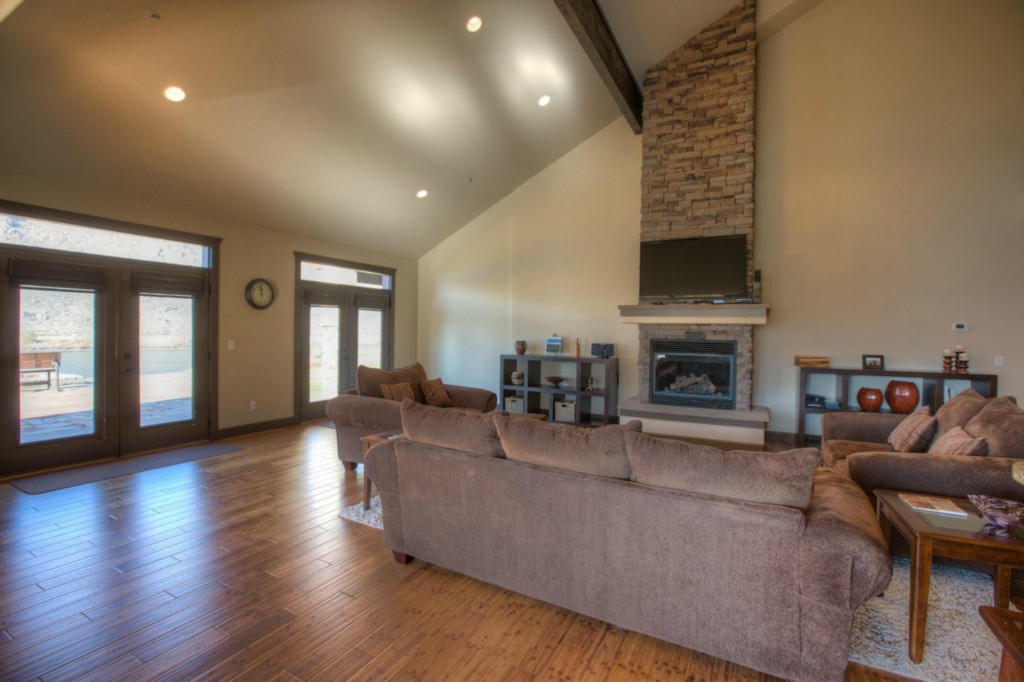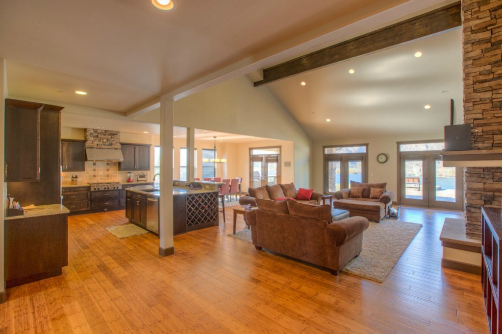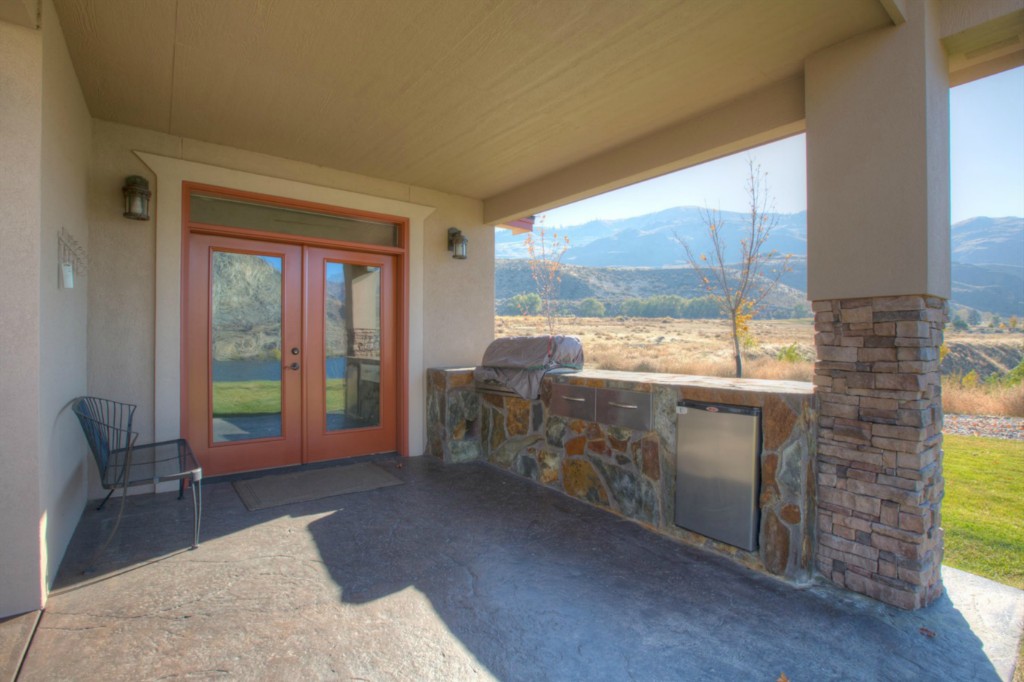 Indoor/outdoor living at its best. Waterfront home. Modern kitchen with stainless steel appliances, 6 burner gas stovetop, granite countertops and huge walk-in pantry. Walk out to covered outdoor patio through full-light French doors. Built-in outdoor kitchen with barbeque, warming drawers and refrigerator. Master suite with private covered deck, large soaking tub and glass tile shower. Large bonus room over garage perfect for pool table or home theater. Private path to secluded waterfront area.