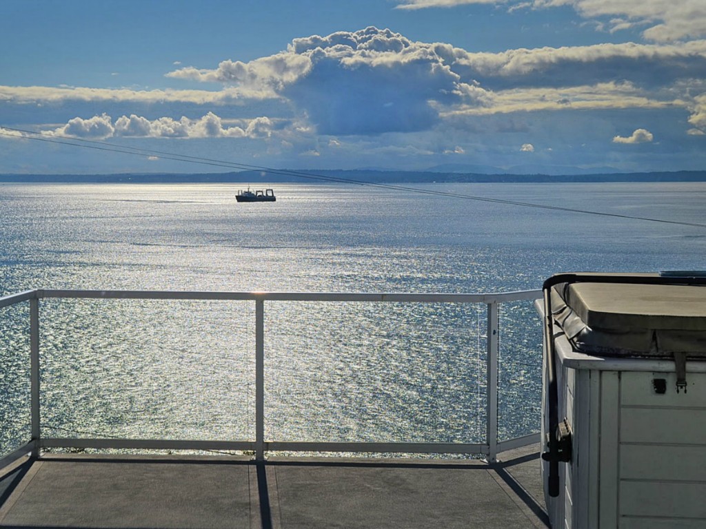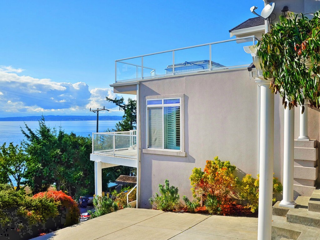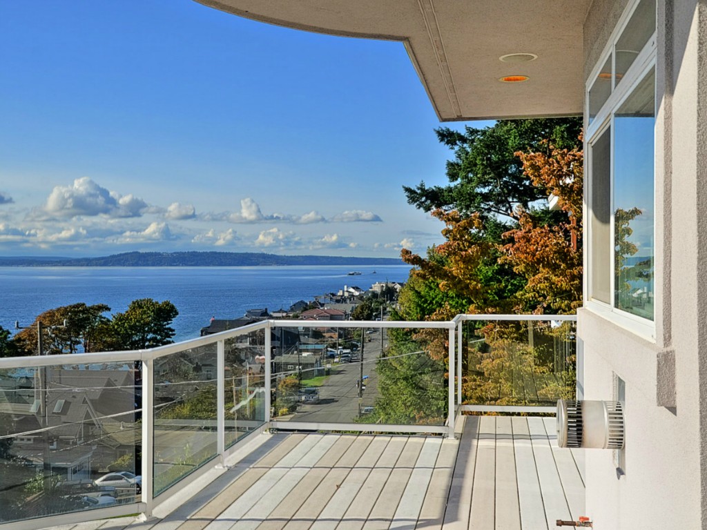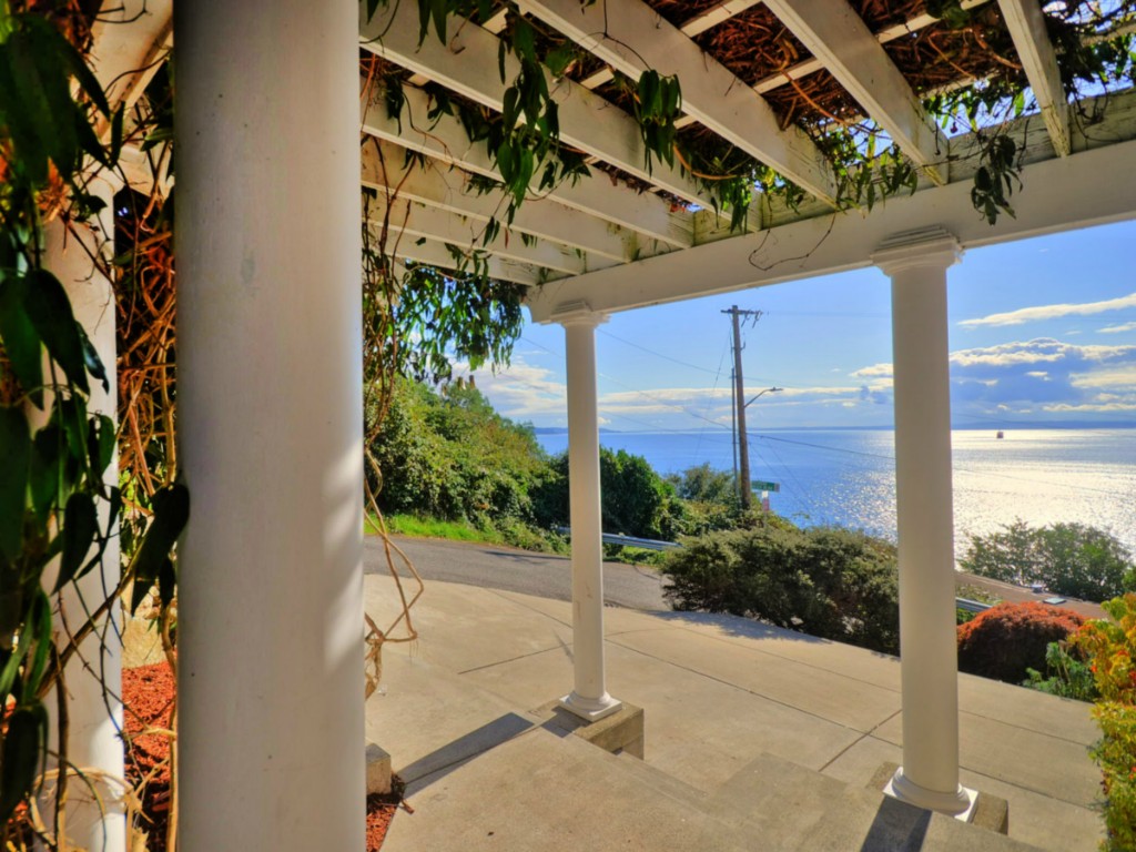 Picture perfect views of the Olympic Mountains and Puget Sound from all three levels. The top floor Master Suite has a huge deck and hot tub, skylights and vaulted ceilings. Two separate Master Bathrooms, a walk-in closet and an office/den. The Living Room and Dining Room include tray ceilings and a beautiful marble tiled gas fireplace . Super modern chefs' Kitchen with 6 burner gas range and side-by-side refrigerator. There are 4 decks/patios to enjoy the tremendous views and outdoor space.