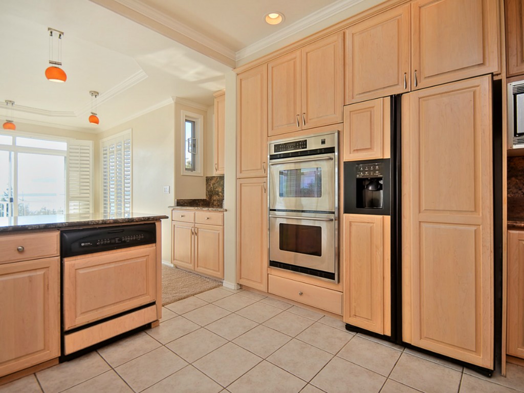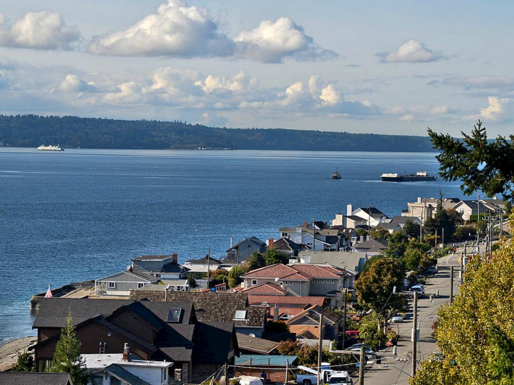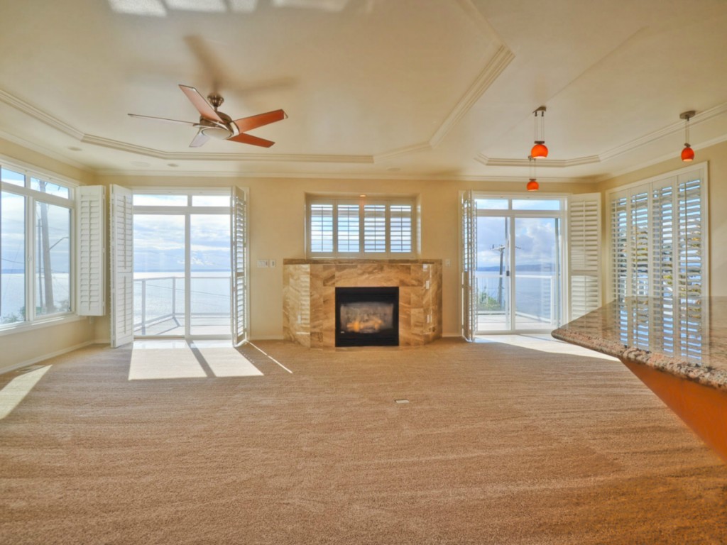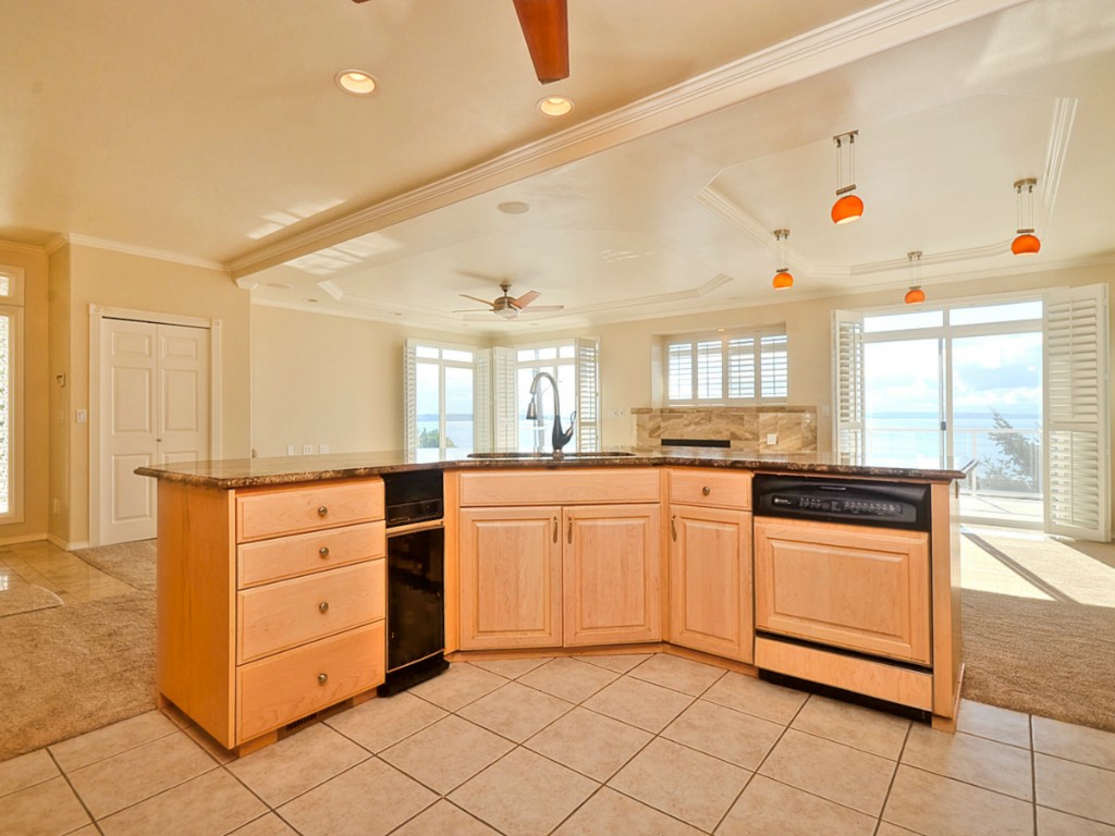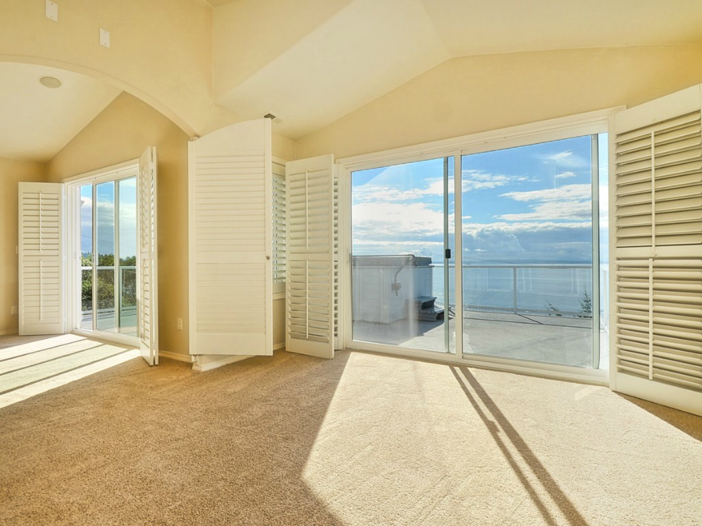 Picture perfect views of the Olympic Mountains and Puget Sound from all three levels. The top floor Master Suite has a huge deck and hot tub, skylights and vaulted ceilings. Two separate Master Bathrooms, a walk-in closet and an office/den. The Living Room and Dining Room include tray ceilings and a beautiful marble tiled gas fireplace . Super modern chefs' Kitchen with 6 burner gas range and side-by-side refrigerator. There are 4 decks/patios to enjoy the tremendous views and outdoor space.