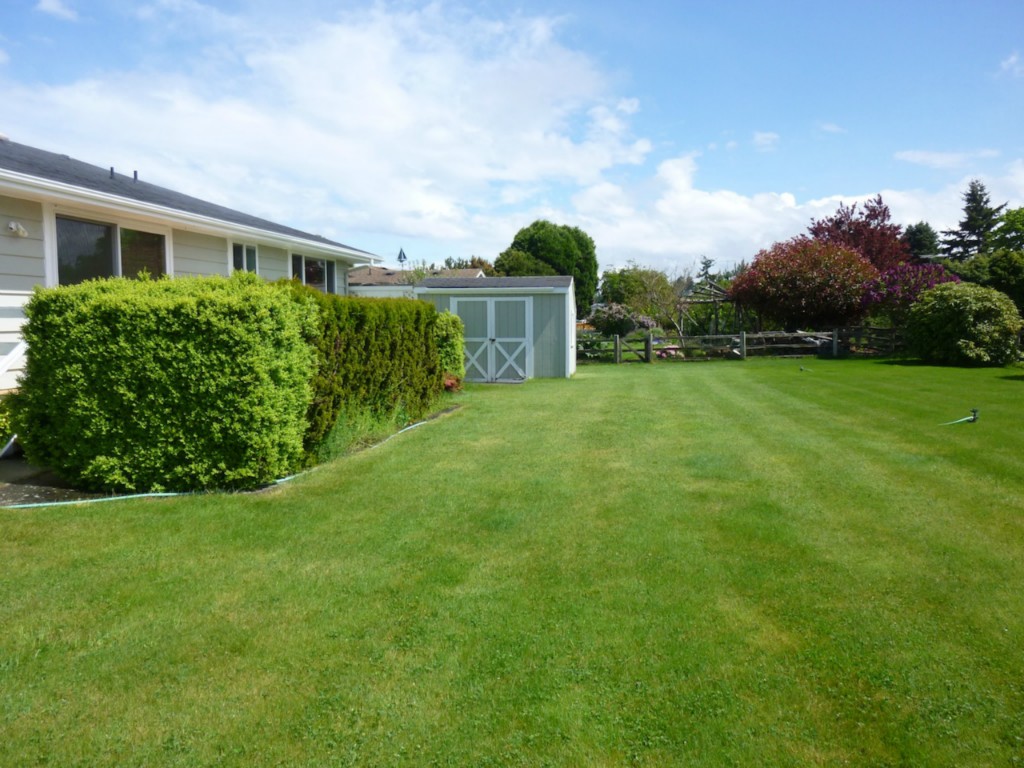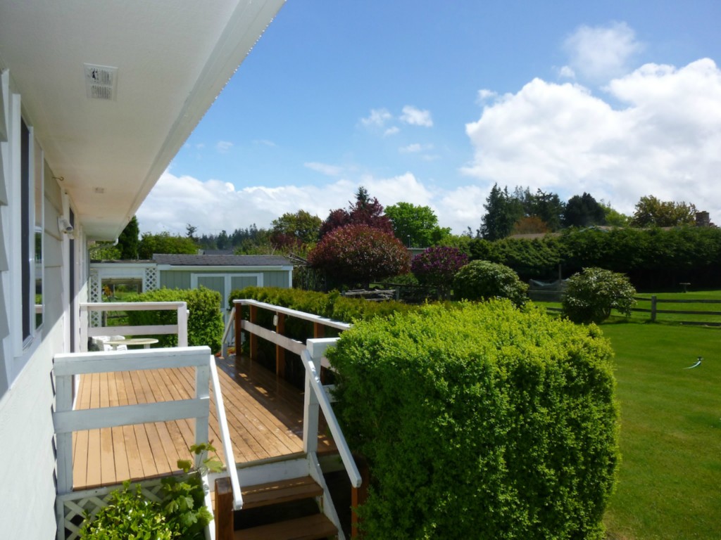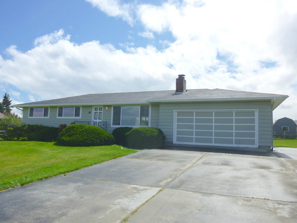 All on one level - 3 bedroom 2 bath home enjoys both saltwater and mountain views. Located in Mains Farm - one block from waterfront. Move in ready with fresh paint and all new vinyl windows. All appliances included - new dishwasher and water heater. Backyard deck for outdoor enjoyment. There is a storage shed as well as a wood shed that could double for gardening. Lots of storage including walk-in pantry. Irrigation water on property for outside watering. Quiet neighborhood with waterfront lot
