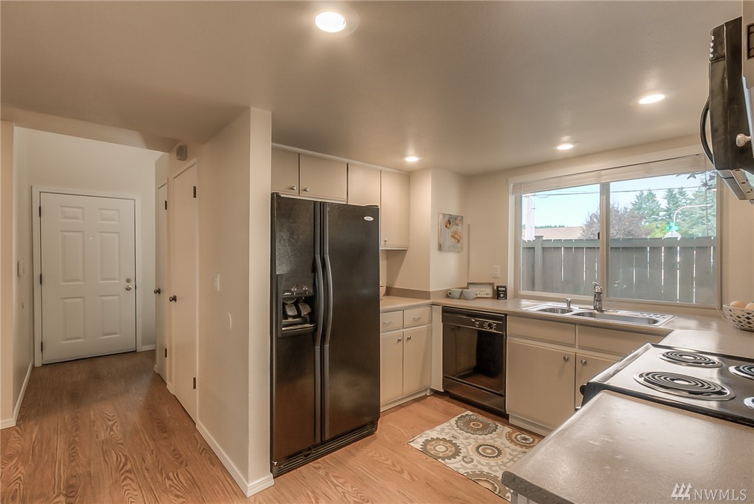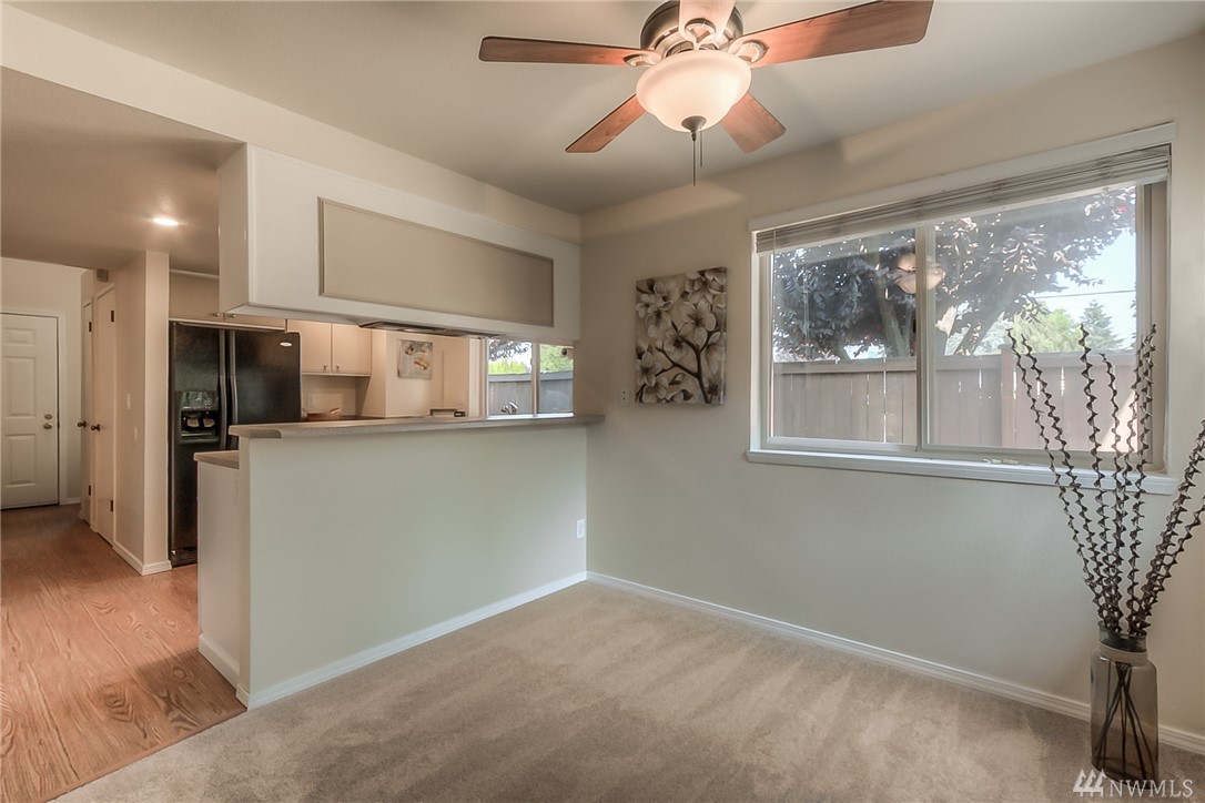 Crisp and Clean! Step into this cute townhome and feel right at home. The open floorplan feels spacious and is filled with natural light. The kitchen overlooks the living room w/ fireplace and the formal dining room, a great layout for entertaining! The master is plenty big with attached full bathroom and good sized walk-in closet. New flooring & paint, refinished cabinets and a fully-fenced backyard with room to roam and a storage shed. Half of the garage is converted to office space/workshop.