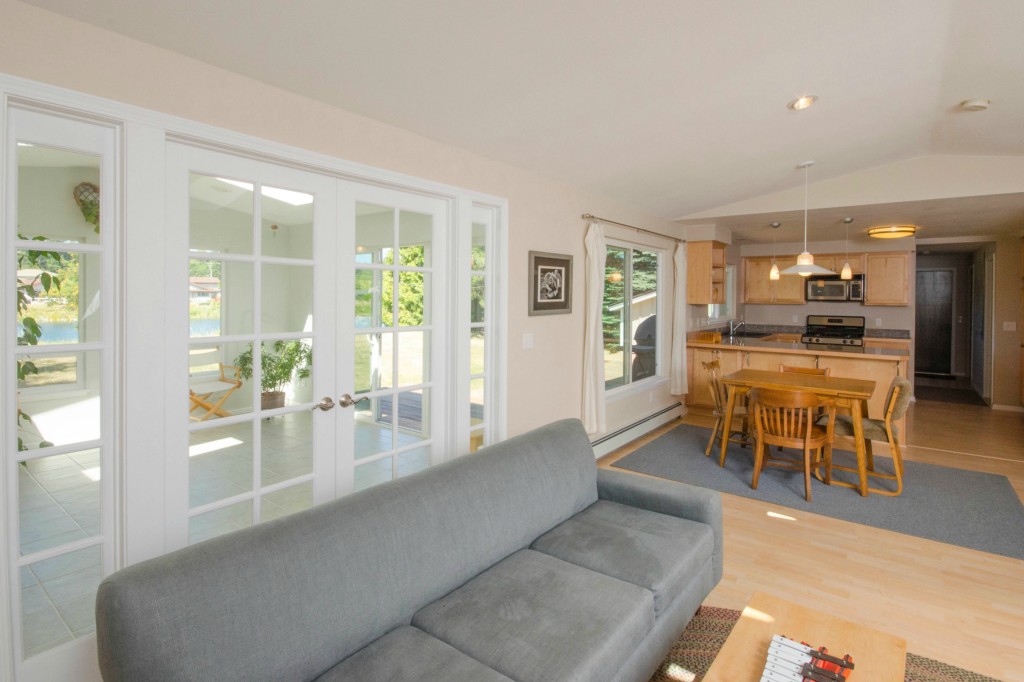 This one story lakefront home in Birch Bay Village is truly a gem. Home has been meticulously remodeled and is open, sunny and bright with natural light streaming in through the skylights. Maple kitchen cabinets w/granite counters and breakfast bar. Bask in the sunlight while reading in the solace of your sunroom overlooking the lake. Very desirable floor plan with both a master and guest suite, total of 2.75 baths. Enjoy the sunsets on your extensive covered front porch, home at last!