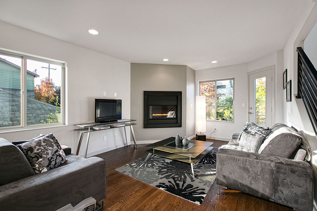 New modern townhome w/high quality finish. Urban Details designs feature modern tiles, stonework, lighting, plumbing, appliance, door and trim package! Efficient floor plan w/ great room style living. Special Montigo linear gas fireplace w/ custom iron surround. Main floor deck. Showcase kitchen with Bertazonni gas range, solid quartz counter-tops, pantry! Spacious master w/ vaulted ceilings & walk in closet. Spa-like 5 piece bath loaded w/ cool tile & stone. Private garage. Energy efficient!