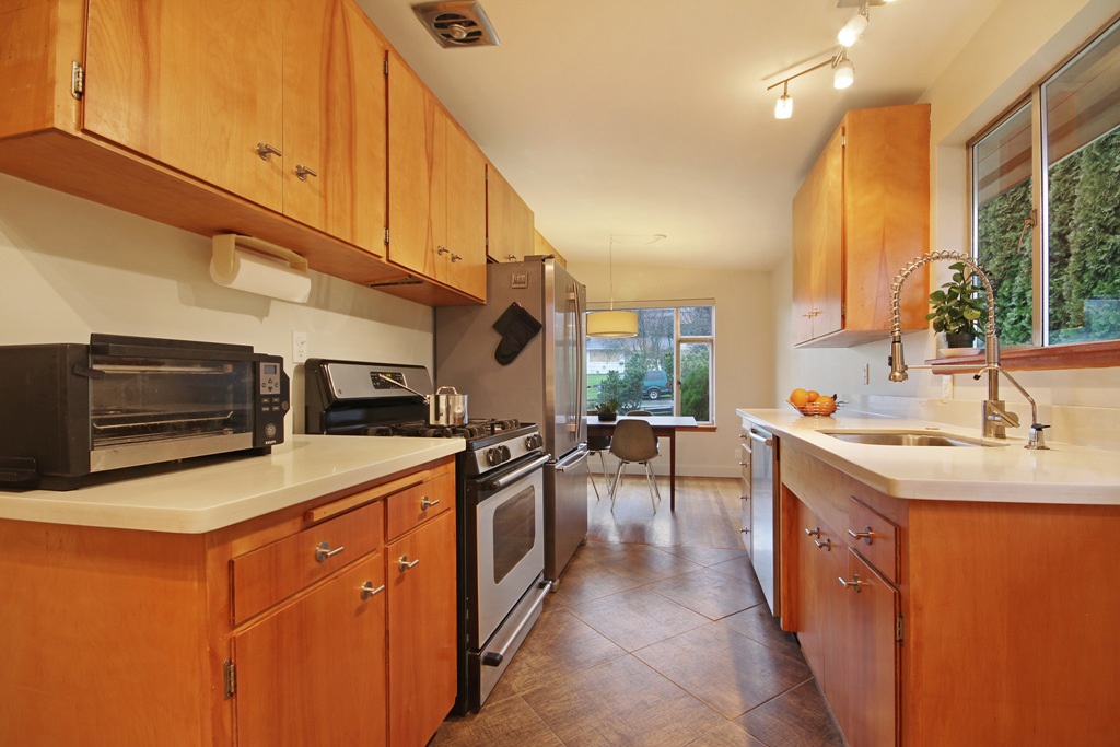 Perfectly located Mid-Century Rambler in wonderful condition. This welcoming home has a flowing layout with light open living and dining rooms, remodeled kitchen with quartz counters, gas range and Bosch dishwasher, new designer bathroom with designer finishes and three bedrooms. Additional features incl hardwood floors, new 50yr roof in 2011, alley access with carport, garden area, laundry and additional storage. Located close to the Alaska Junction, park and waterfront. A great opportunity.