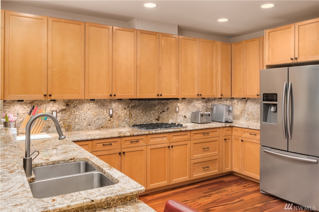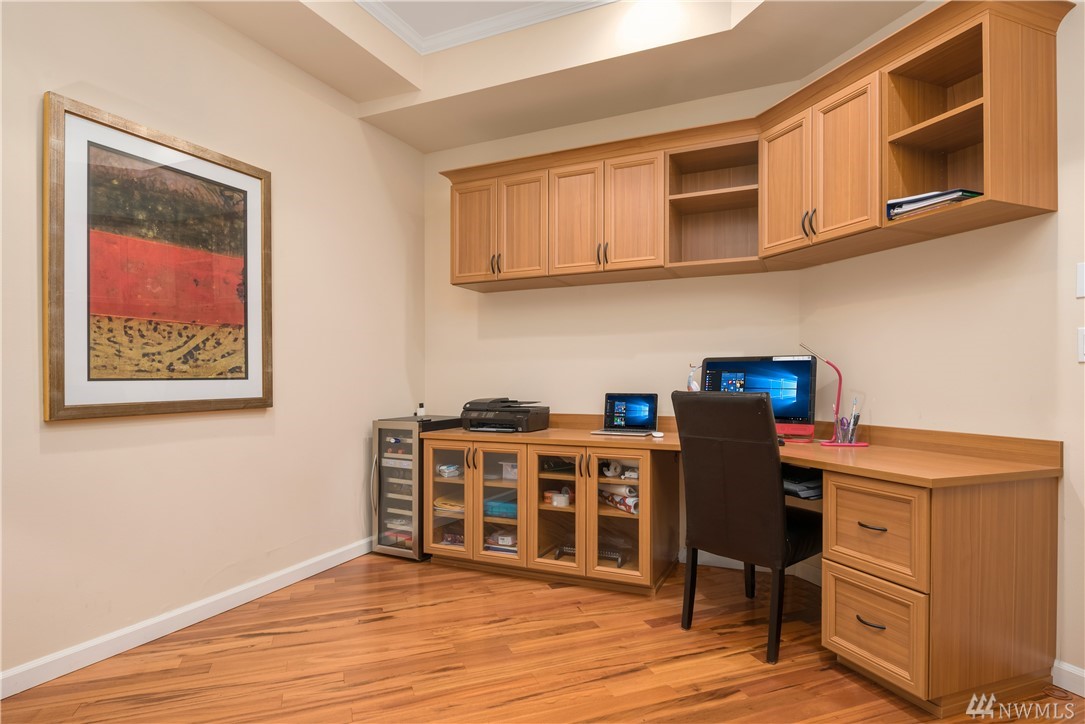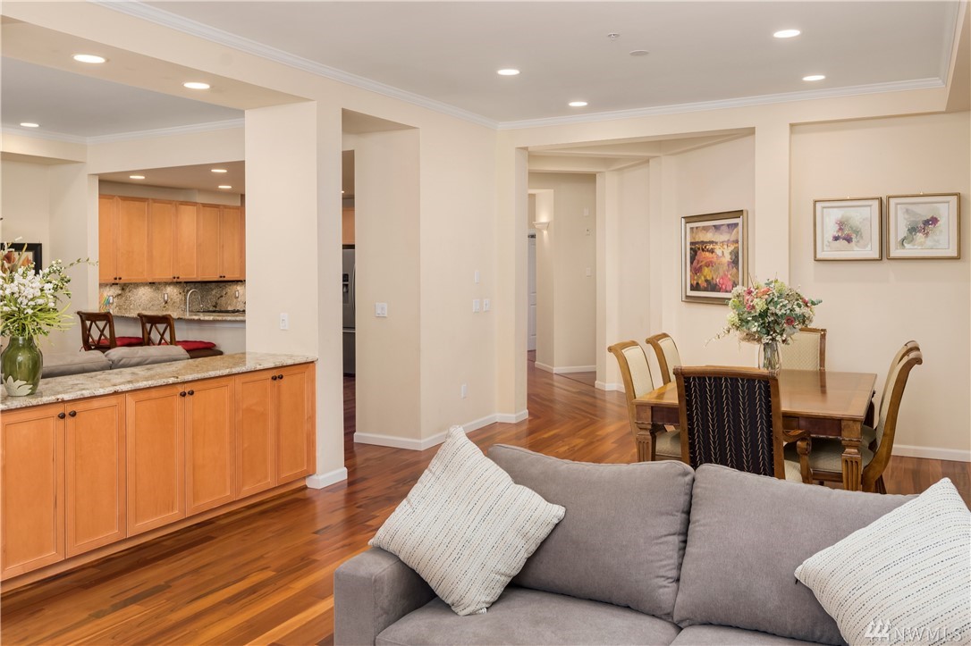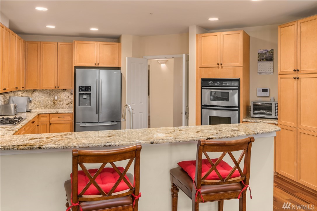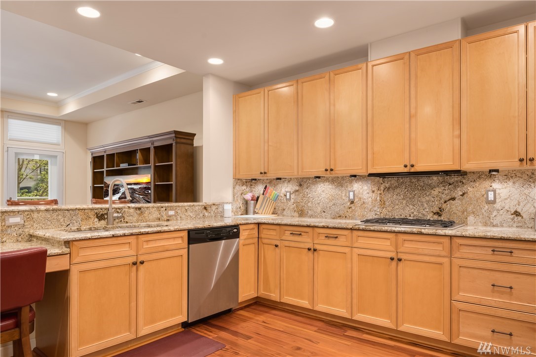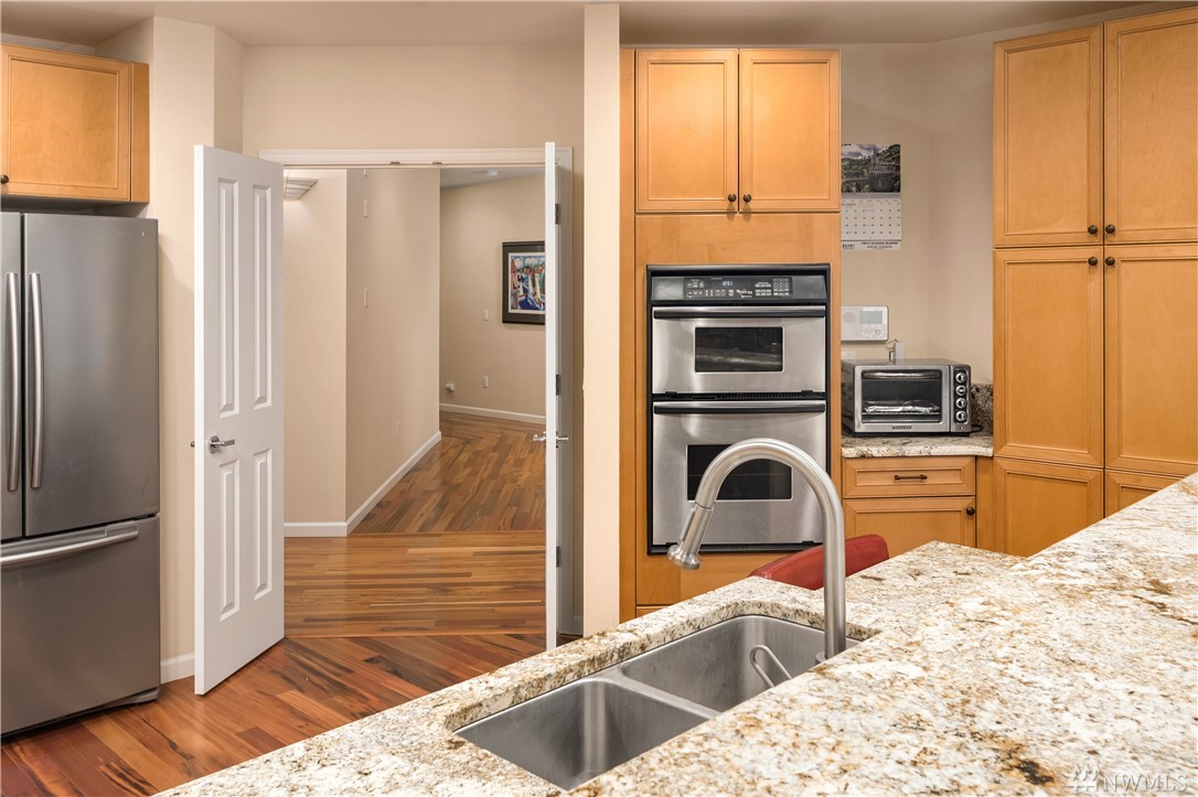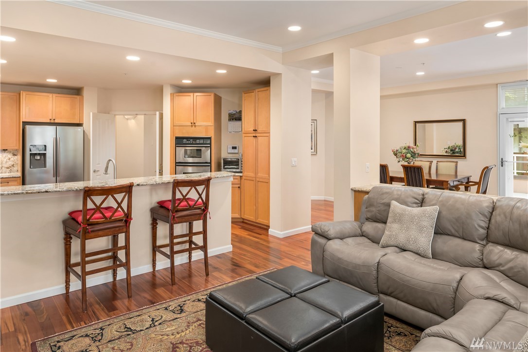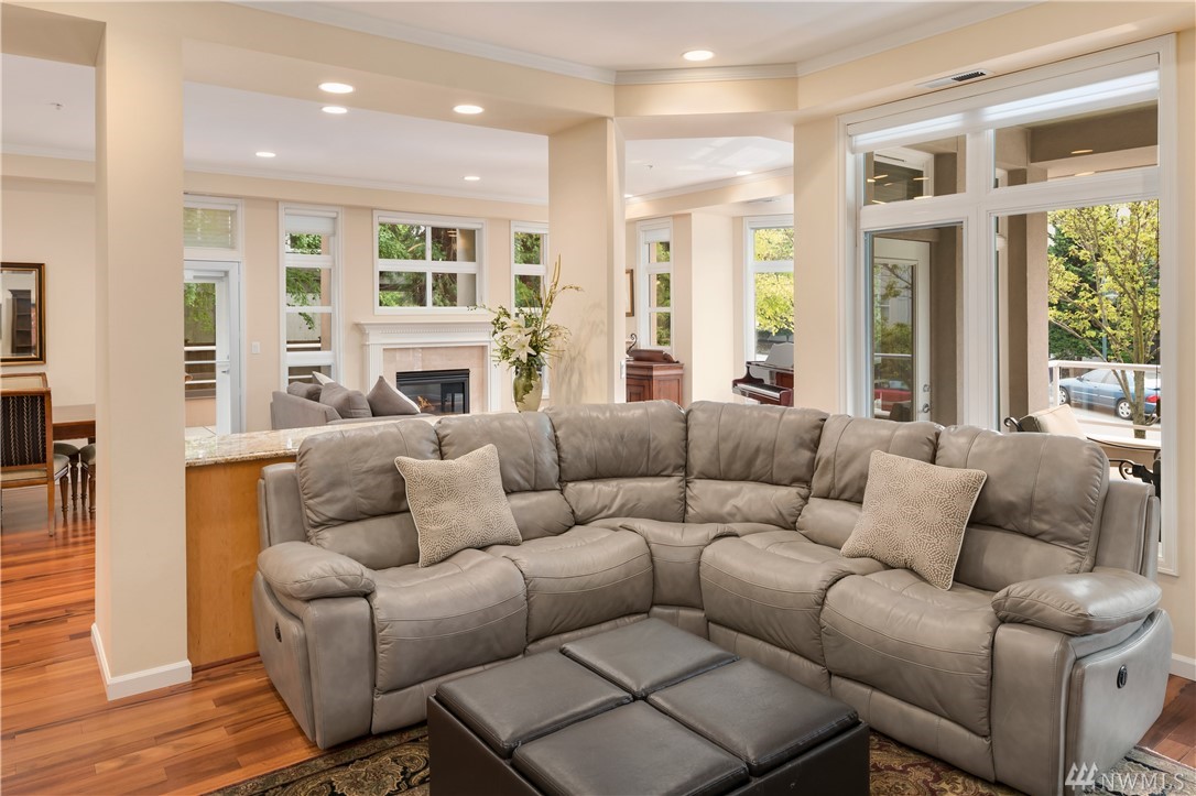 This ground floor end unit is a part of downtown Kirkland scene. Close to shopping, restaurants, parks & the lake. This 2000+sf home has 2 bedrooms, 1 den, 2 full baths, 2 large decks, a beautiful chef's kitchen with stainless steel appliances & a dispensary, 2 secure reserved parking slips, master bath with jetted tub & heated floor. If you couple this with a great room, dining room, living room, kitchen with eating counter, then you have a home ready to personalize with your signature touch.