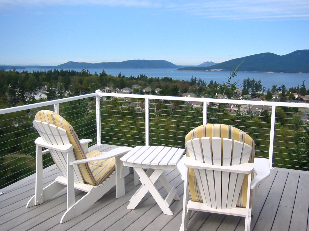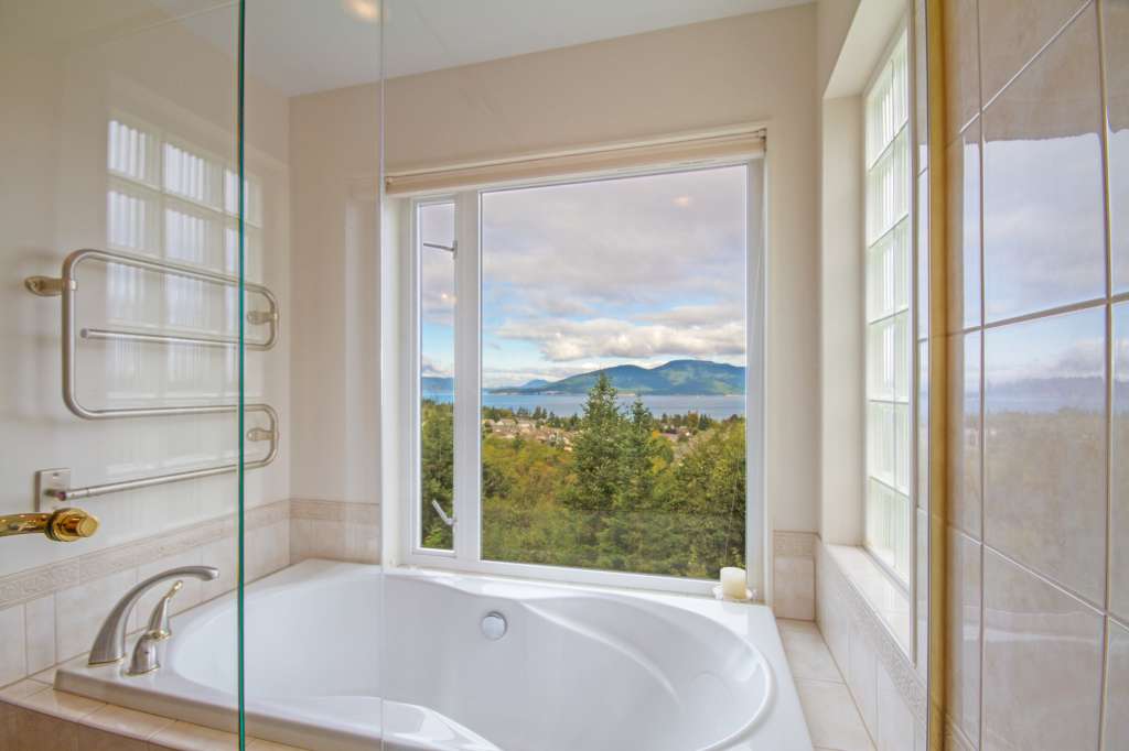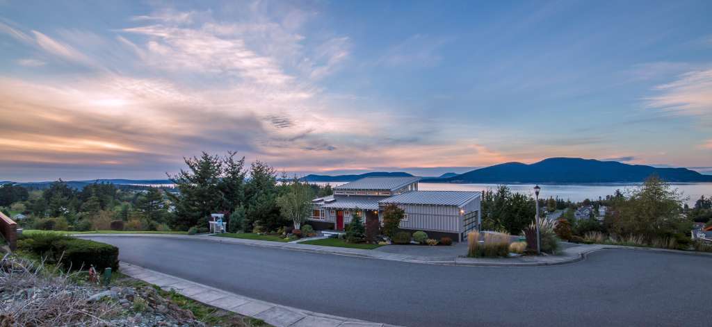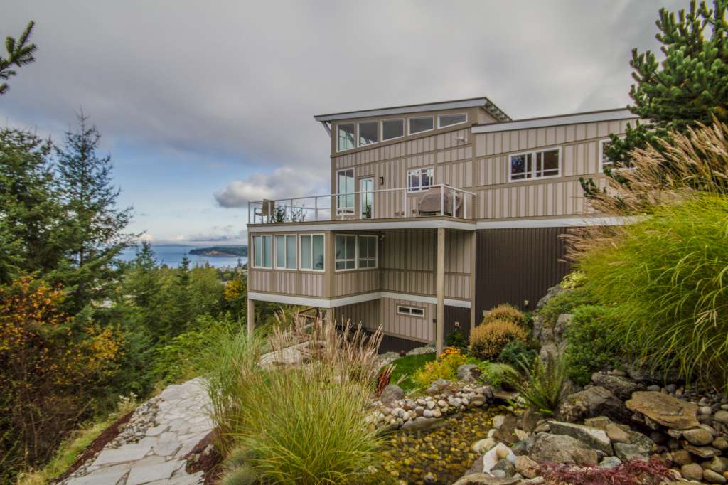 Enjoy gorgeous custom home with spectacular views of the San Juan Islands. Entertain or relax in true west coast style. Stunning, great room showcases amazing architectural features. Come home to a luxurious environment with a focus on natural materials and practical, comfortable living spaces. Retreat to your luxurious ensuite, private deck and spa. Stroll on terraced walkways leading to waterfall and stone patios. Ambient warmth awaits you and your guests; welcome home.
