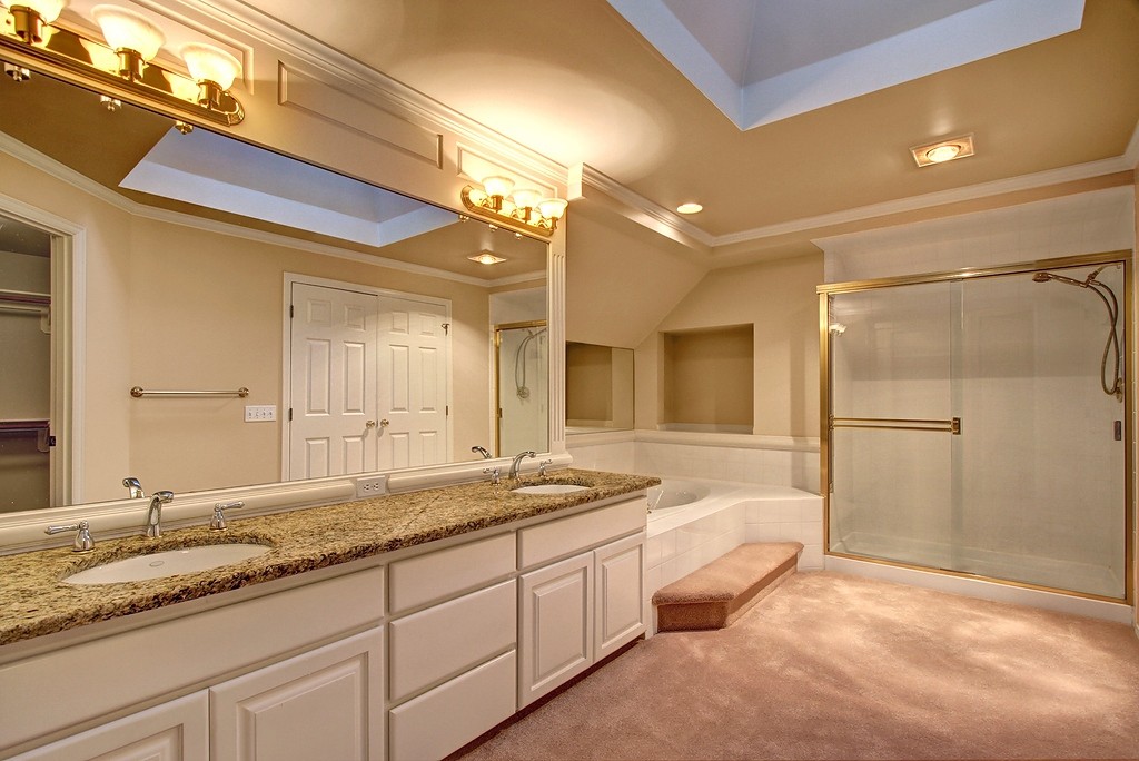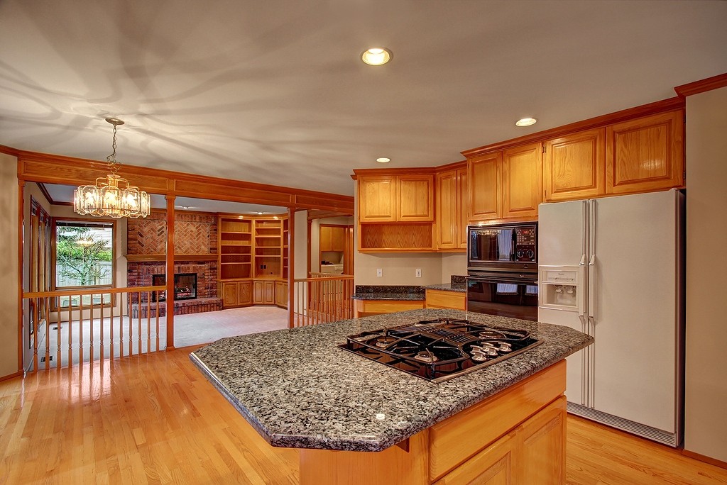 Spectacular home in a quiet, private park like setting w/a gorgeous fully fenced manicured yard. Impeccably cared for Buchan built home with brand new carpet,new granite in the kitchen and bathrooms and fresh interior paint thru out the home. Plus the hardwood floors have just been refinished! Spacious kitchen features a large center island with gas cooktop, walk in pantry, built in desk and plenty of cabinet and counter space.Flexible floor plan has 4 bdms plus den or 3 bed,den + bonus room