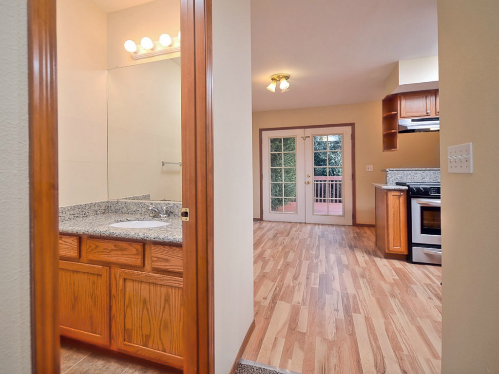 Updated townhome in the heart of downtown Renton. Light-filled house w/new carpet, granite counters, s/s appliances, new paint throughout. Large KIT w/eat-in area plus breakfast bar. Double patio doors open to deck for entertaining and large fenced yard. Upstairs full-sized W/D. Master has walk-in closet. Skylight in upstairs bath Gas heat, hot water heater and stove. Walking distance to restaurants & shopping. Large 2 car garage w/add'l parking in driveway. NO homeowner's dues.