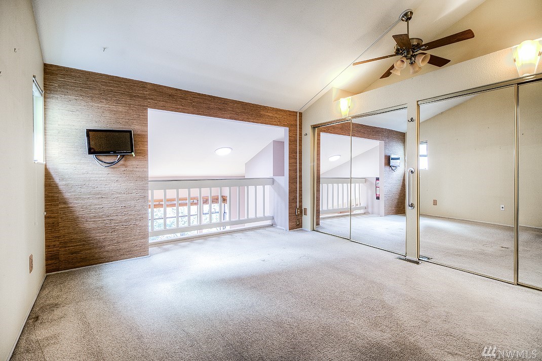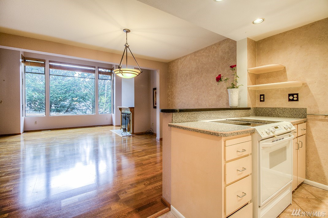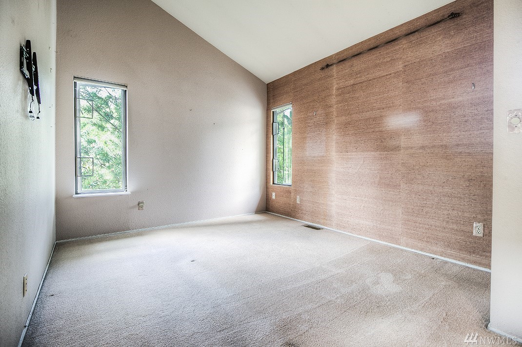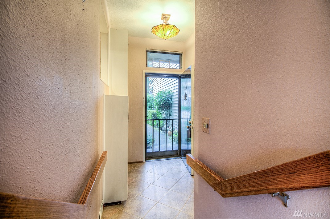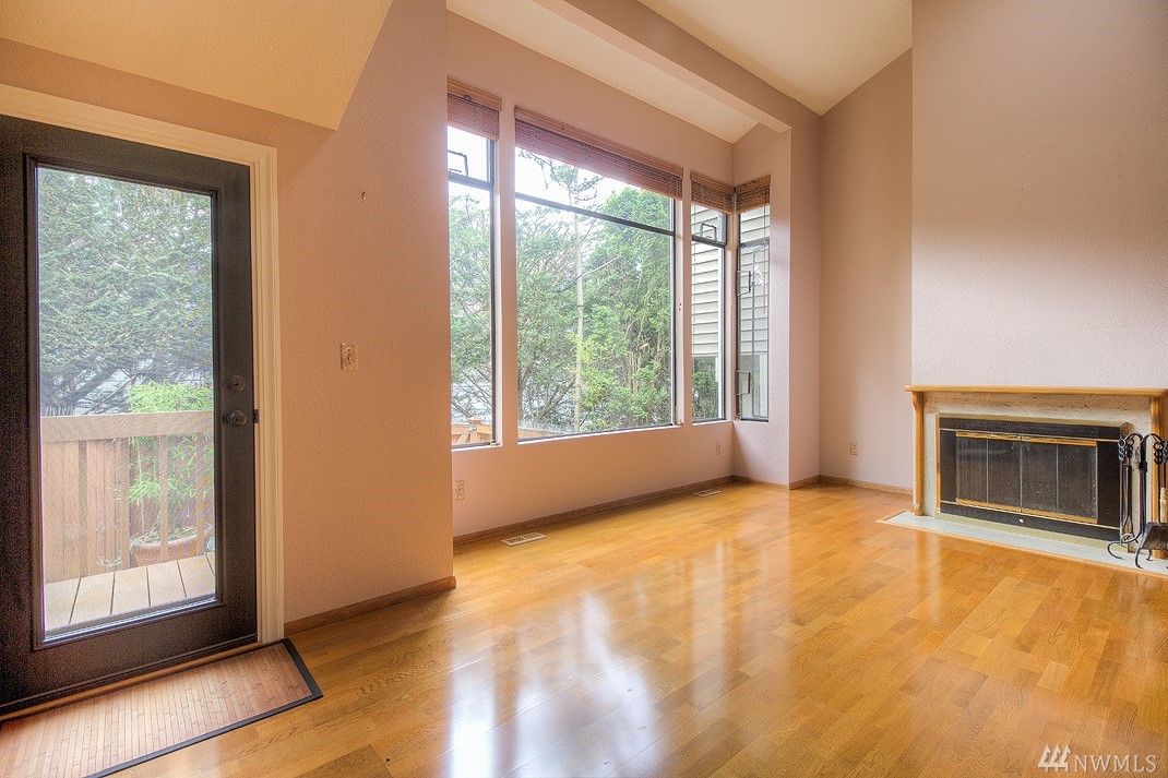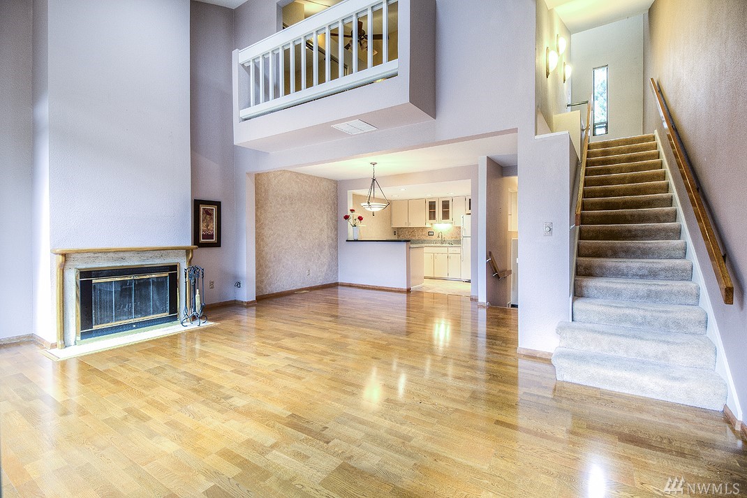 This 15 unit townhouse with 1,374 sq. ft. is located down a lane & is in the back of the complex. Very Quiet.Two car garage with storage Backyard has large deck, small planting area, is private & totally fenced. The living room has large windows, high vaulted ceilings, fireplace & hardwood floors. There are 2 bedrooms & 2 bathrooms upstairs & a small office. Kitchen is adjacent to Living & dining rm. Main level has 1/2 bath. Located close to I 90, schools & downtown Bellevue. Low HOA Dues