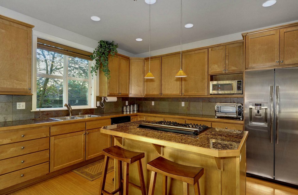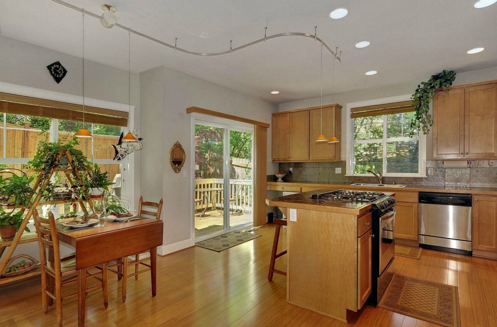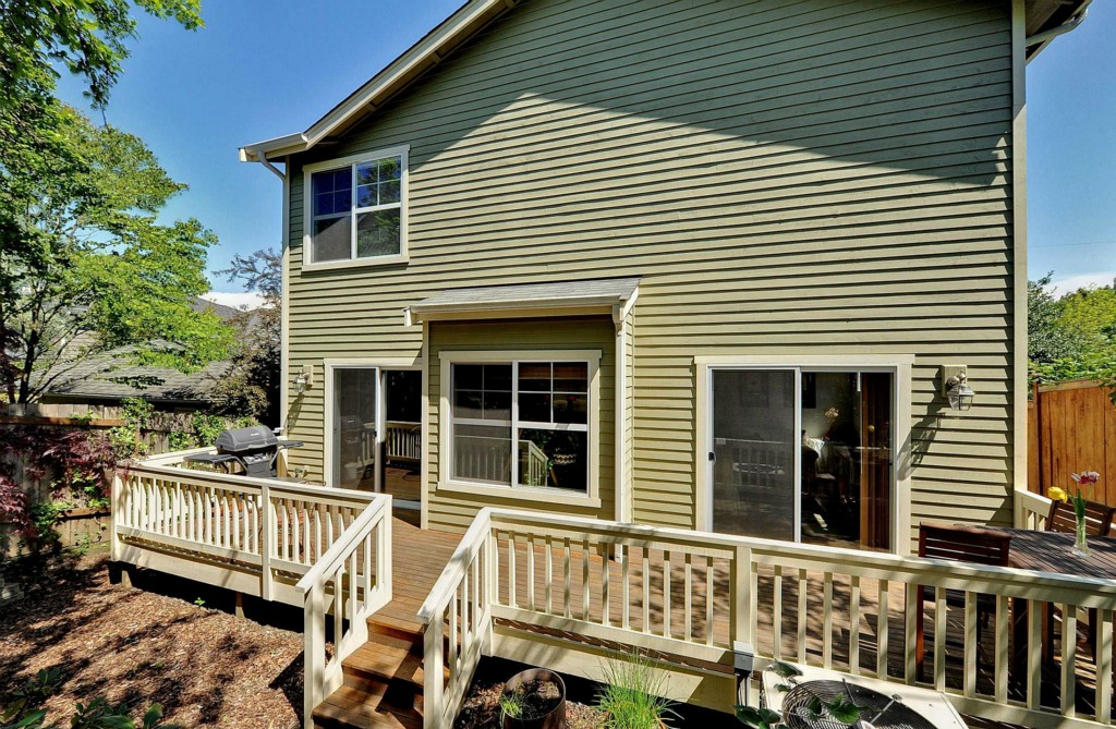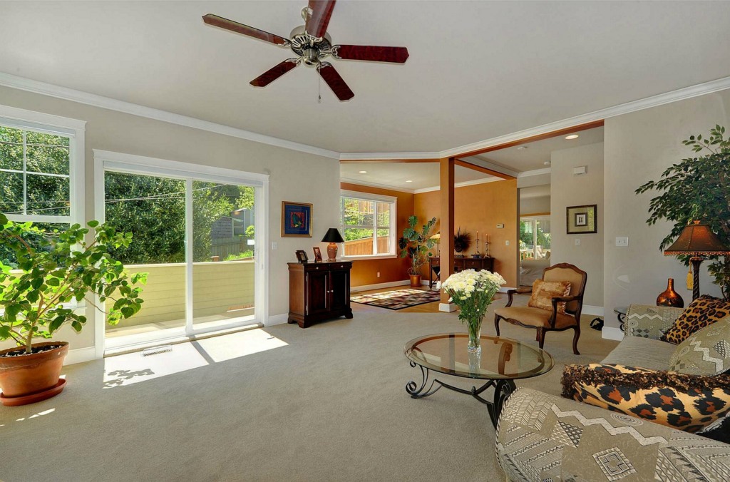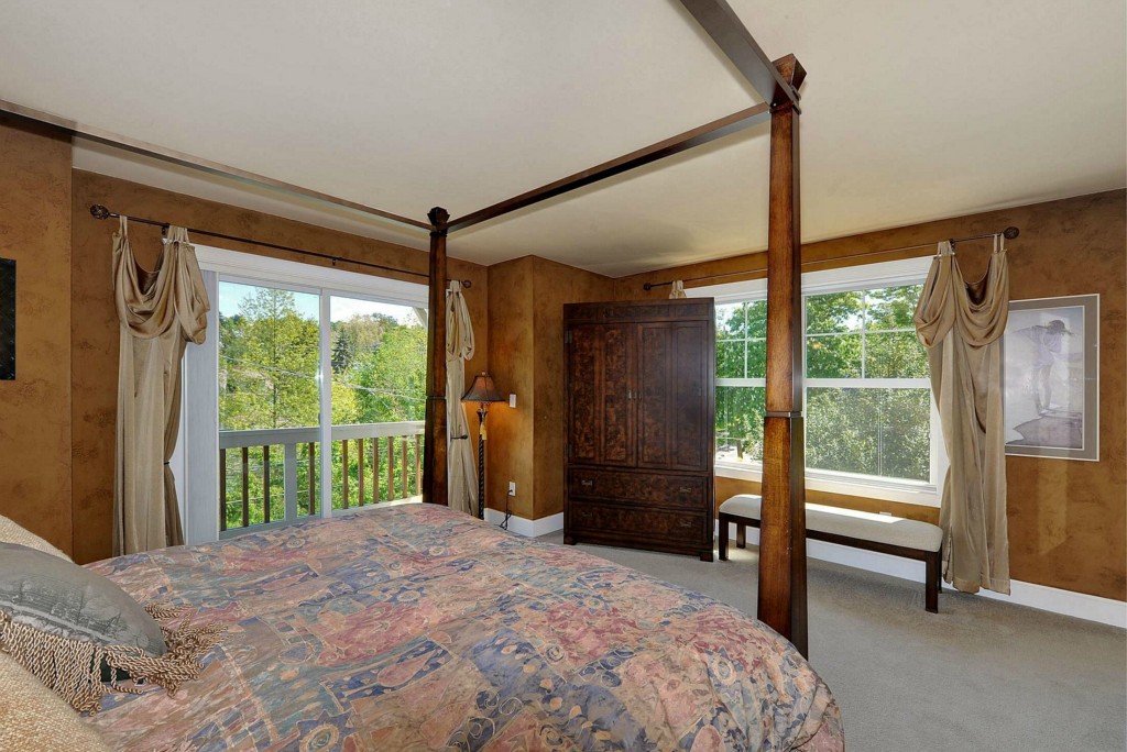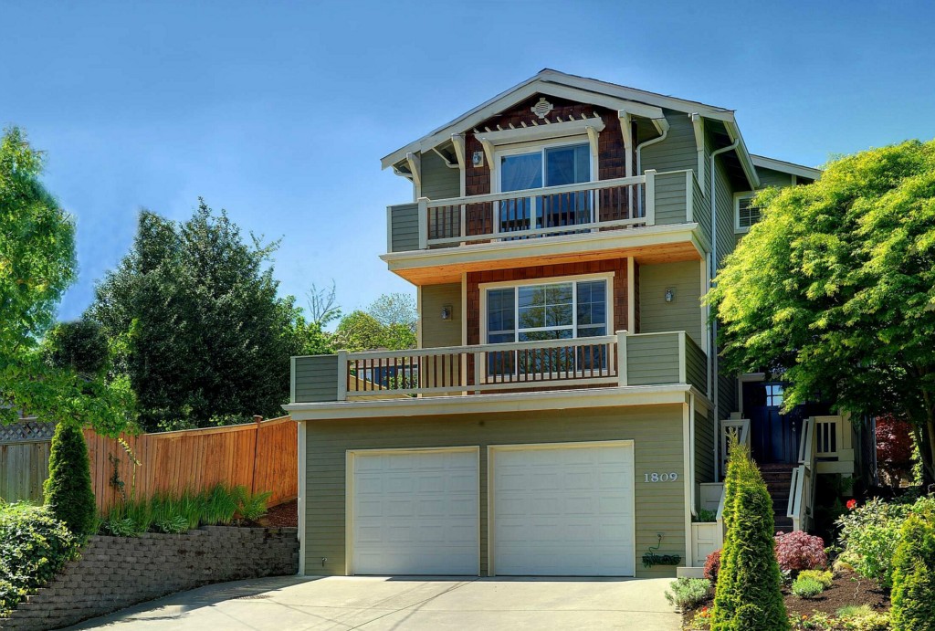 Spacious Craftsman perched high above the street offering privacy, sunny exposure and beautiful vistas! Like-new condition with high quality finishes. Bamboo floors, gourmet kitchen with granite/slate finishes. Ideal for entertaining! Open floor plan; living room and dining room with crown moldings, and a family room which opens to a private deck. Master suite with view and deck, soaking tub, shower, and walk-in closet. The oversized two-car garage. Low maintenance yard with lush landscaping.