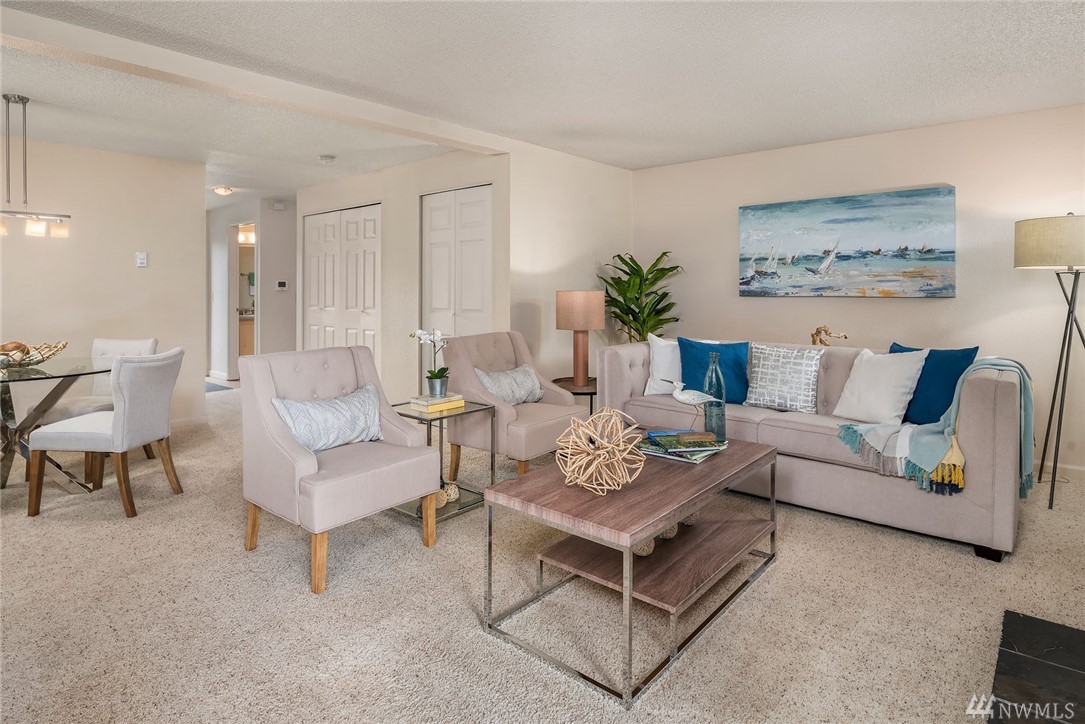 Updated town home nestled in a park like setting! Open floor plan w/ large kitchen. Wood burning fireplace. Upper level features master bedroom w/ walk-in closet, large 2nd bedroom and full bath. Private back patio overlooking grounds. 2 reserved parking spaces. Beautiful community well managed and maintained. Close proximity to Des Moines Marina, Highline College, waterfront parks, bus line and new Angle Lake Light Rail Station! Don't miss the clubhouse, gym, outdoor pool and play structure.
