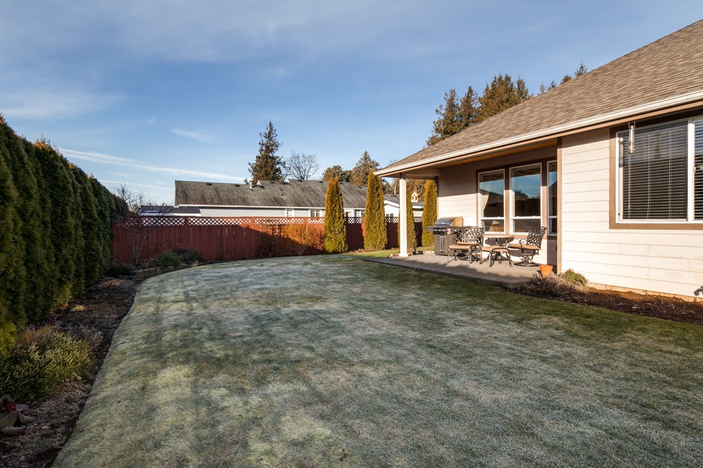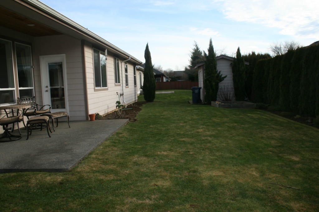 Comfortable single story home with no steps! Southern exposure delivers refreshing natural sun light filling the kitchen and great room. Crown molding, slab granite counters, custom cabinetry, & a walk-in pantry ditinguish the kitchen. Master ensuite complete with soaker tub, double sink vanity, ceramic tile, & walk-in closet. Laundry room comes loaded with storage. A covered patio w/mature arborvitae hedge for complete privacy in the back yard plus a storage shed are an added bonus!