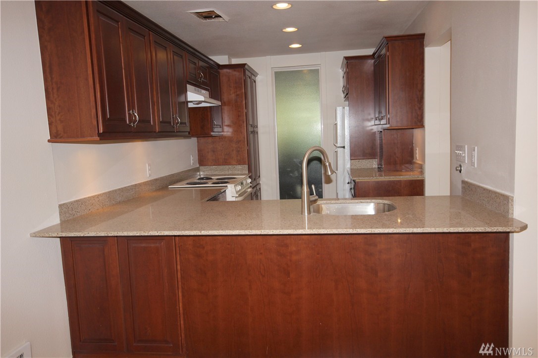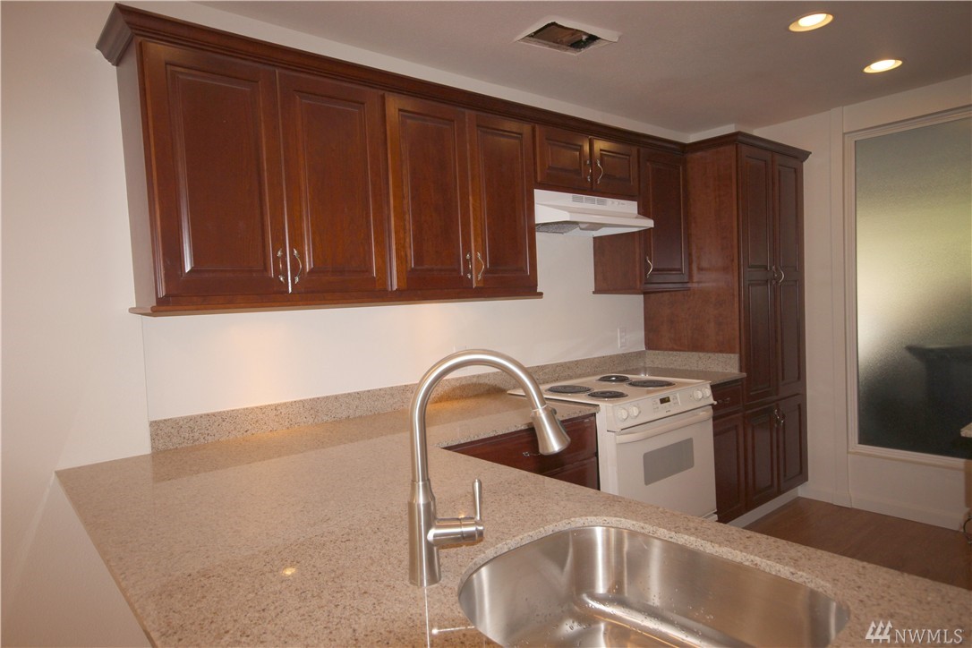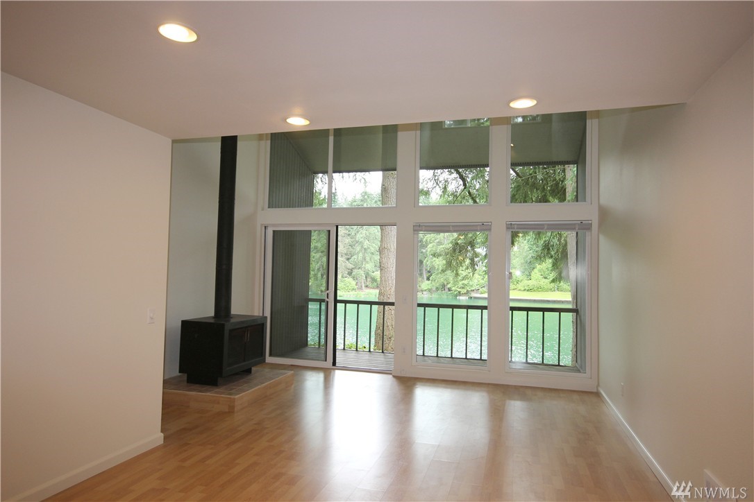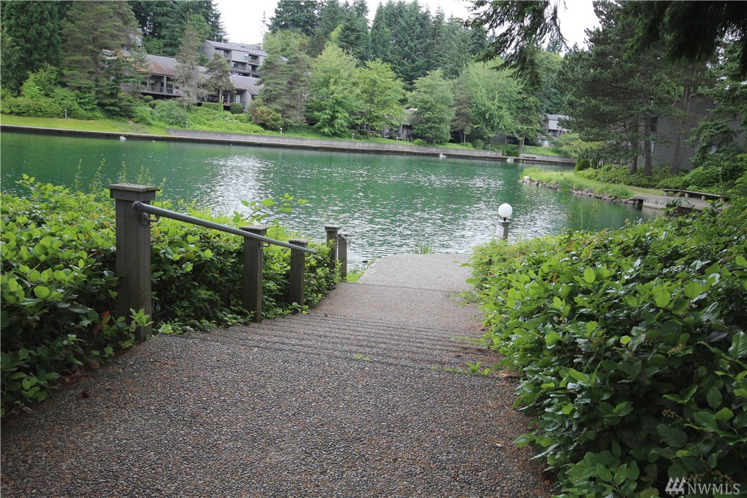 Beautifully remodeled lake front home in the wonderful Sixty-01 gated community. Great view of lake, swans & fountain right from your own balcony. Breakfast bar open to living/dining room. End unit right by entrance for easy access. Amenities include 3 lakes, 2 waterfalls, 4 pools, walking trails, gym,extensive landscaping, picnic area, & so much more. Easy access to 405, Microsoft, Google & Redmond. Popcorn ceilings have been removed & interior newly painted