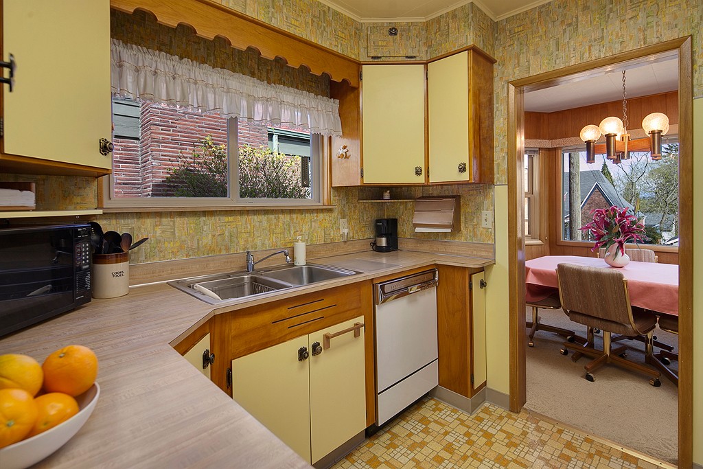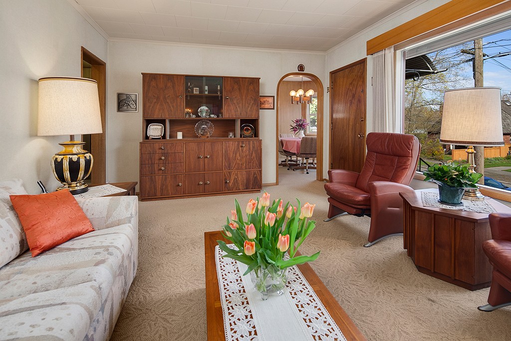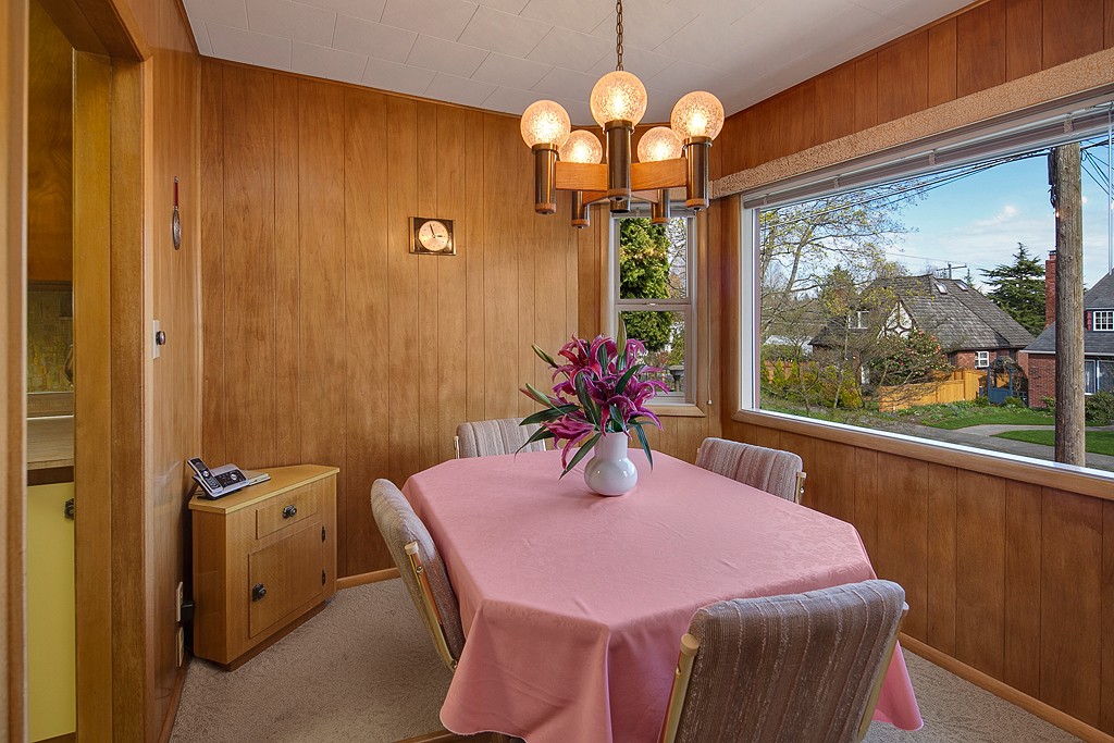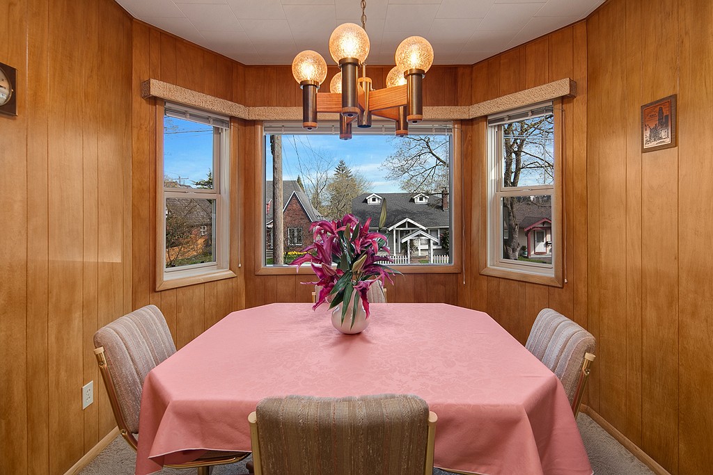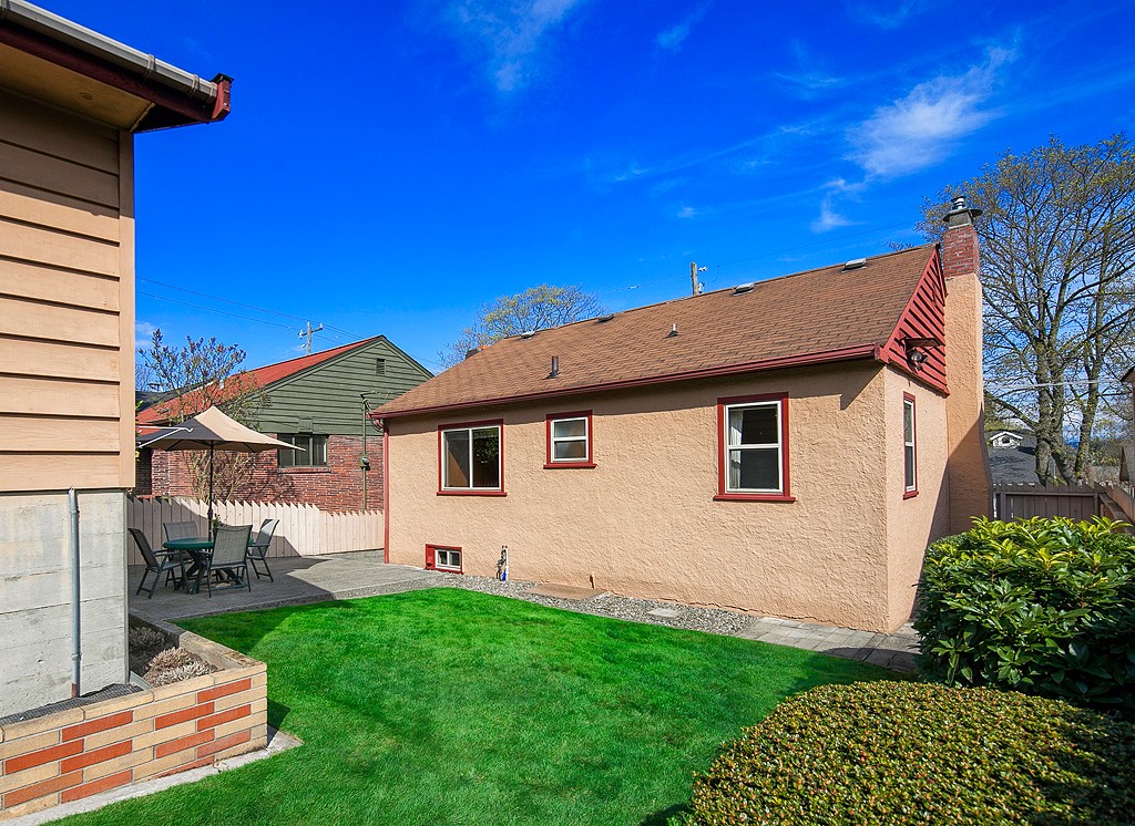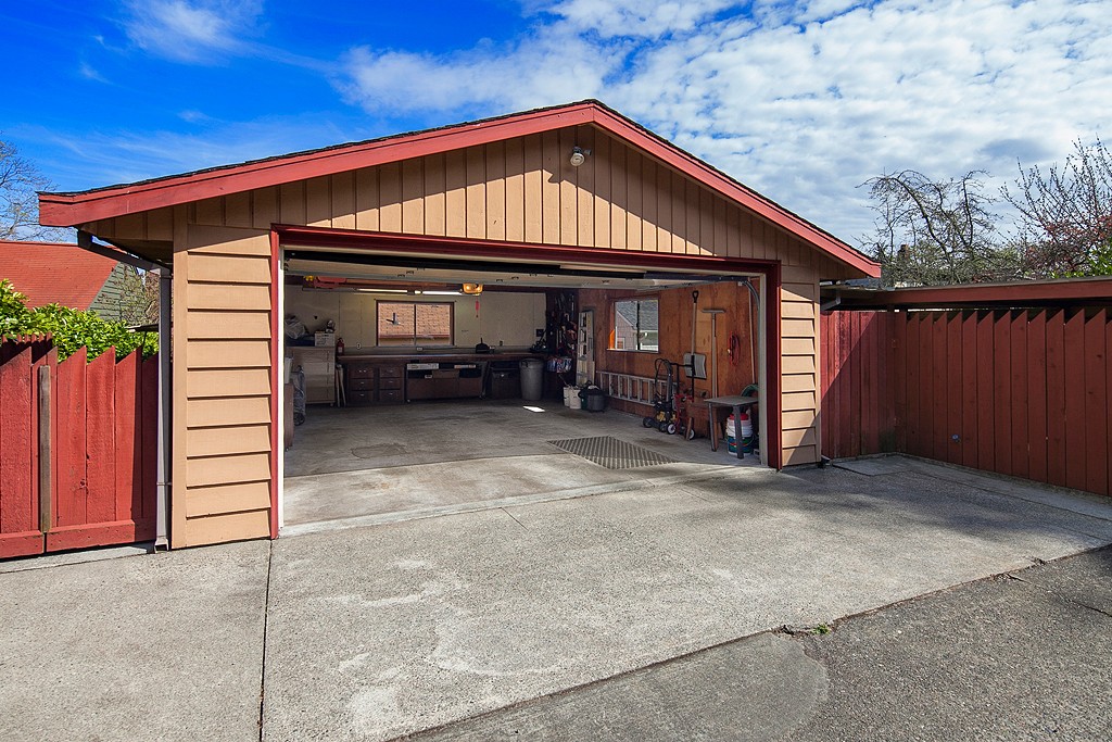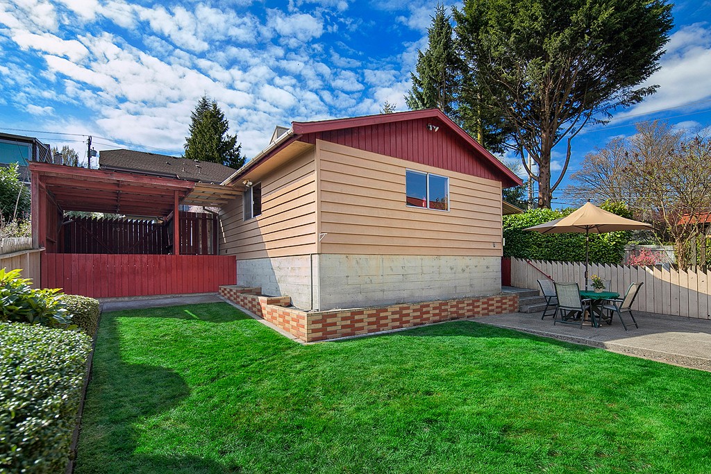 Meticulously maintained 2 bedroom 1 bath home on Professor's row in Bryant. Updated electrical, copper plumbing and gas furnace. Sited high above the street for maximum privacy. Enjoy the light filled living and dining area as well as the west facing backyard for barbecues. Two car garage with electrical and shop area. Carport for boat storage or another car. Move-in ready and potential view lot. Alley access. Close to Burke Gilman Trail, Bryant Elementary, Children's Hospital and more.