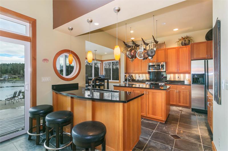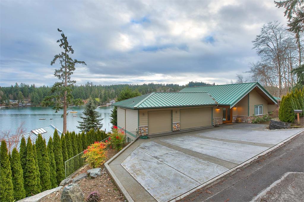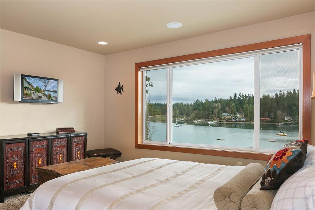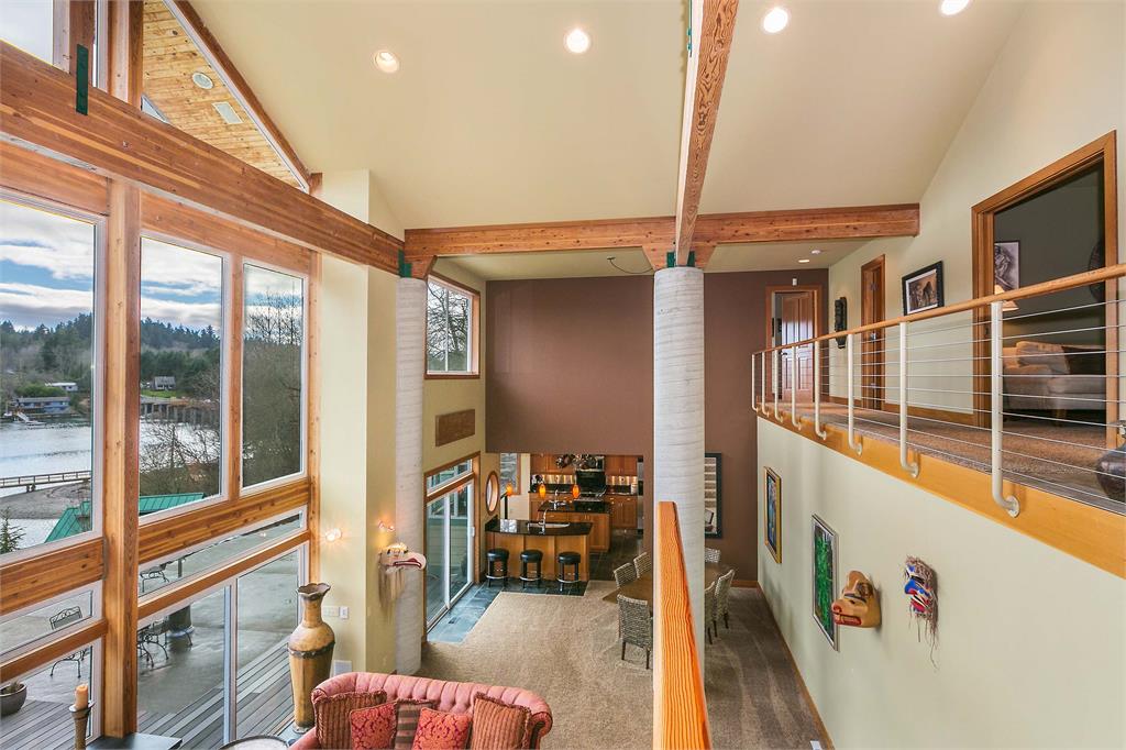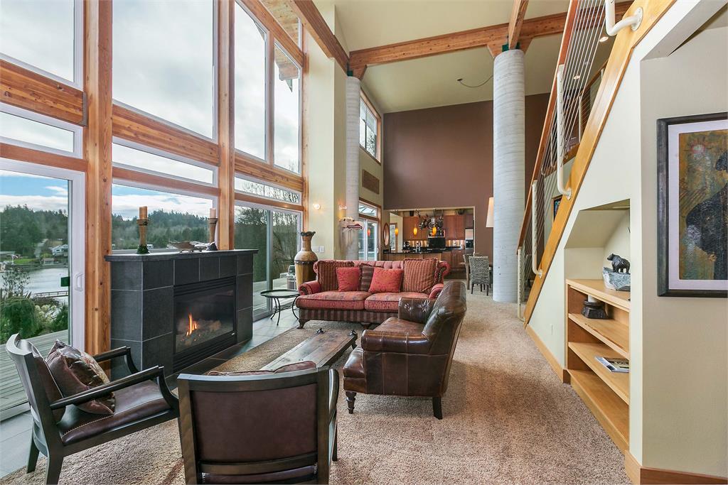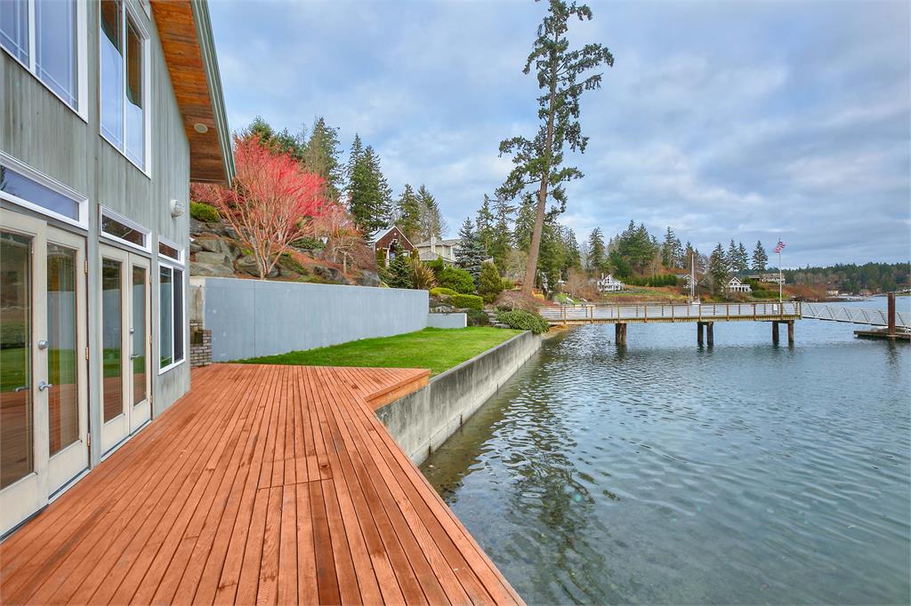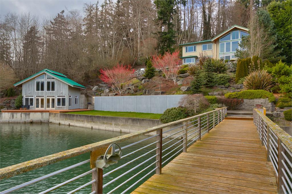Beautiful south facing custom NW Contemporary home has exposed wood beams, soaring ceilings & is bathed in sunlight! Awesome dock w/water & power! Entertain at the water's edge. Amazing views of Carr Inlet & beyond. Newly remodeled gourmet kitchen w/custom fir cabinets & stainless appliances. View filled master with 5 piece bath. VG fir trim throughout. New bridge to be completed in July! Island HOA dues & bridge fees under $200/mo.