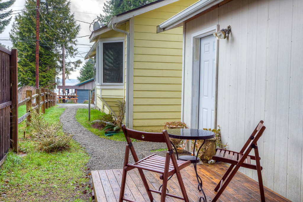 Charming Suquamish Home with Peekaboo view of the Sound! You will love the open floor plan, vaulted ceilings, ample kitchen storage, large covered front porch which is perfect for relaxing. The property also boasts a 400+ square foot studio that is completely insulated, lighted, and heated. This space could be perfect for a game room, an at home office, the artist, the musician, or whatever direction your heart takes you.