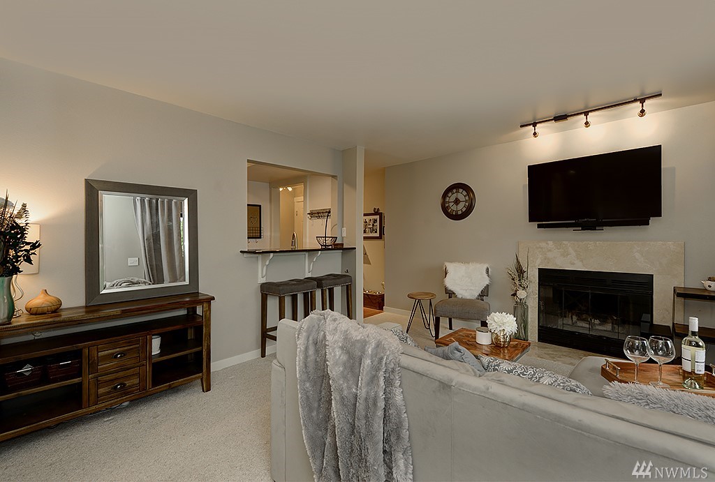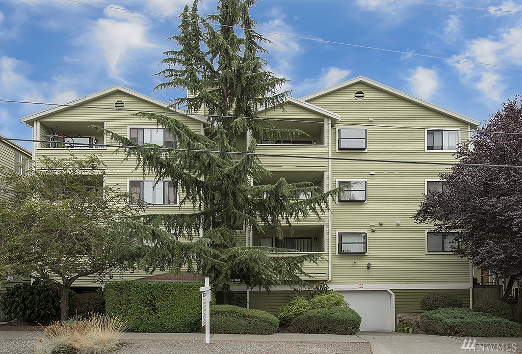 Welcome home to this light and bright 2 bedroom condo just steps from Greenlake and Greenwood! Beautifully maintained home with slab granite counters and stainless steel appliances. Easy commute access with several major bus lines close by, and reserved parking in secure garage. Wood burning fireplace and custom shelving. In unit washer-dryer and all appliances included. Well managed HOA and no special assessments.
