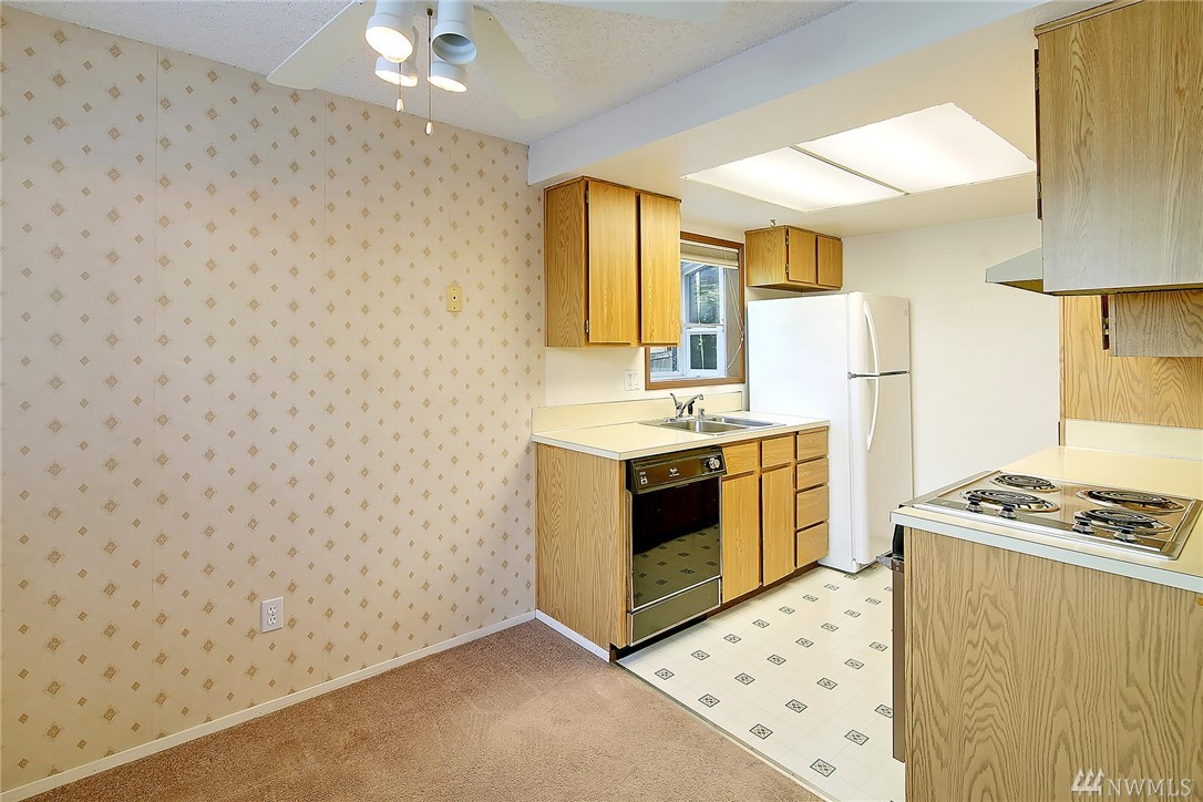 You will love this condo. It's in a small, well managed complex in a great location. The living room and adjacent dining are spacious, doors lead to your private patio. The pleasant kitchen has ample work space & a garden window. All of the appliances will stay, including the washer & dryer. The bedroom is good sized and features a walk-in closet. The full bath has lots of storage. The complex is convenient to Edmonds Community College, freeway access, hospital, post office, parks & golf course.