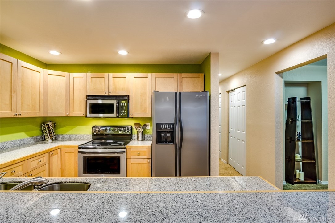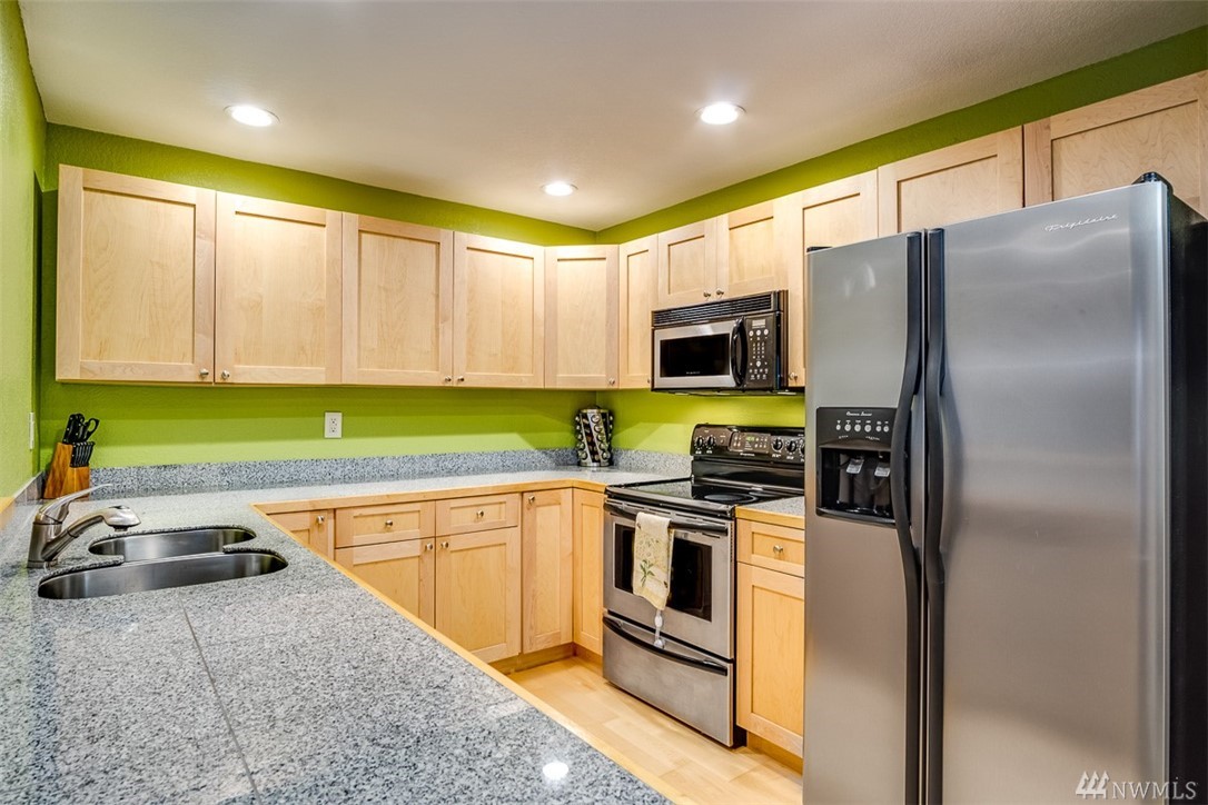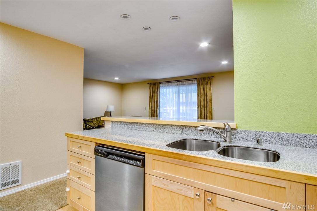 One block to Juanita’s Euro Village and a five-minute walk to Juanita Beach and parks. 2 bedrooms, 1.75 bath garden level with patio. Spacious kitchen with granite countertops, stainless steel appliances & maple cabinets. This is a super clean and well cared for home. Move in condition with new(er) carpet, paint, water heater, lighting & other fixtures. Two parking spaces (one is private garage) & a separate storage room. Easy access to all shopping, downtown Kirkland, 405 & Park & Ride.