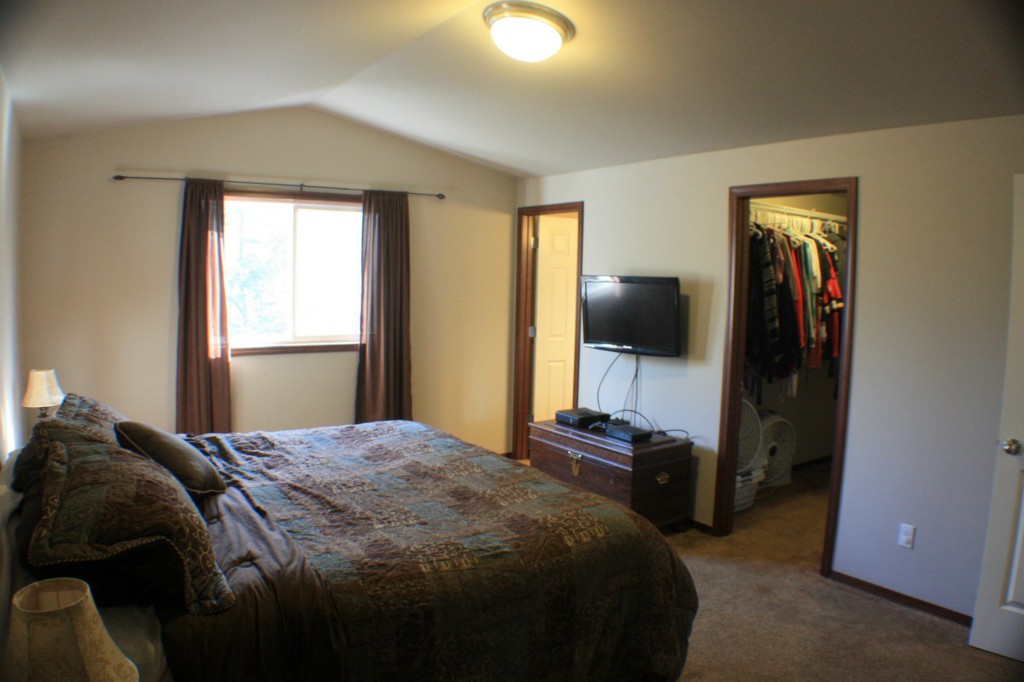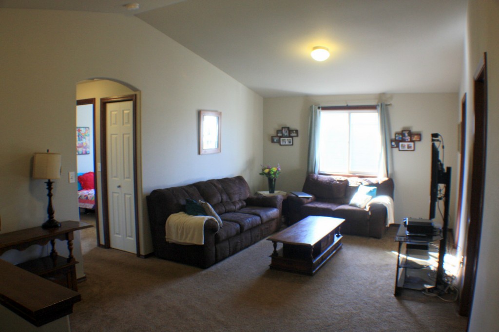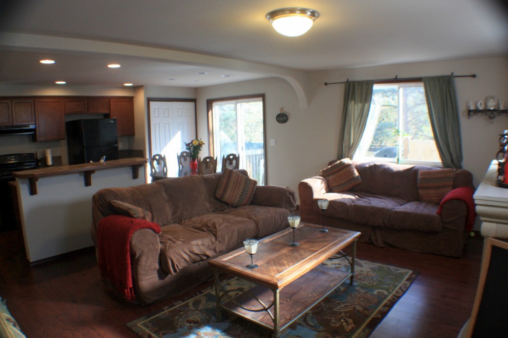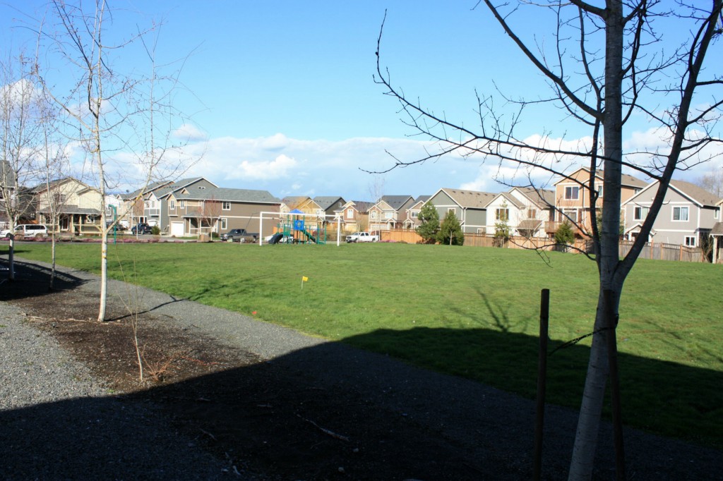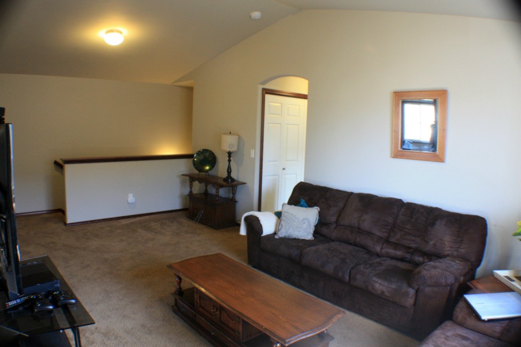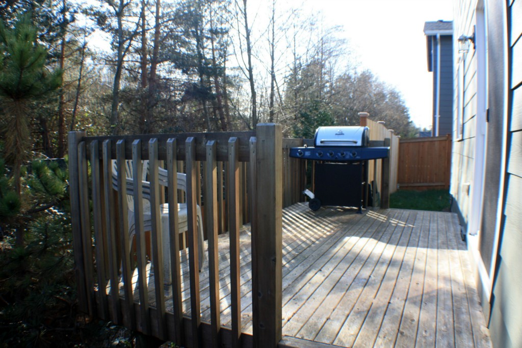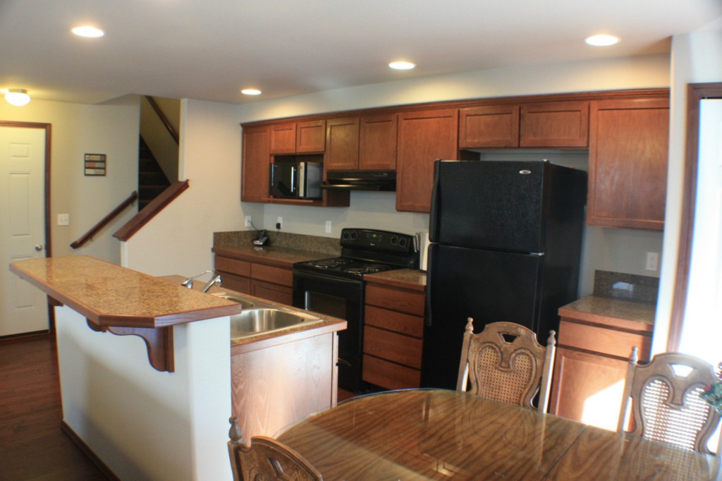 Great open floor plan in The Meadows. Beautiful hardwoods on main level with granite countertops, kitchen island, private deck & 1/2 bath downstairs. Upstairs is a cozy family room along with 3 bedrooms and 2 baths. Spacious Master bedroom and family room have vaulted ceilings and are light and bright. One of the best lots in the community with extra driveway parking, end of the street next to park with wooded area behind. Front lawn & parks maintained by HOA. Possible 0 down for a great home.