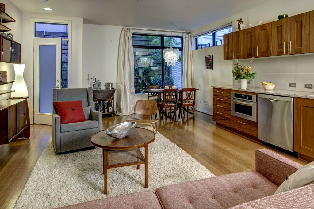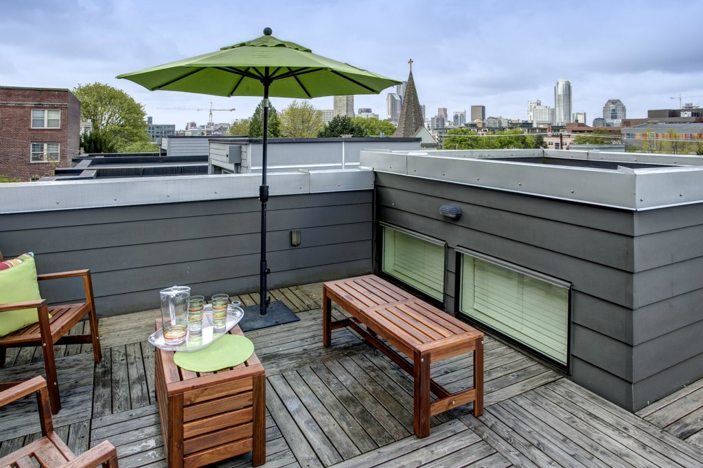 Live in this chic Capitol Hill town home nestled across from Cal Anderson Park. Talk about swank - built in 2007, this mod home has a sleek open floor plan that is excellent for entertaining. The 2nd floor of living offers an extra bedroom & den and top floor features a master with its own balcony and access to a roof top deck with sweeping city & Space Needle views. So whether it's a BBQ on the deck, dining with friends or an outdoor movie at the park - fine urban living is right here!