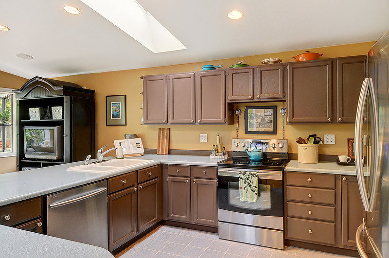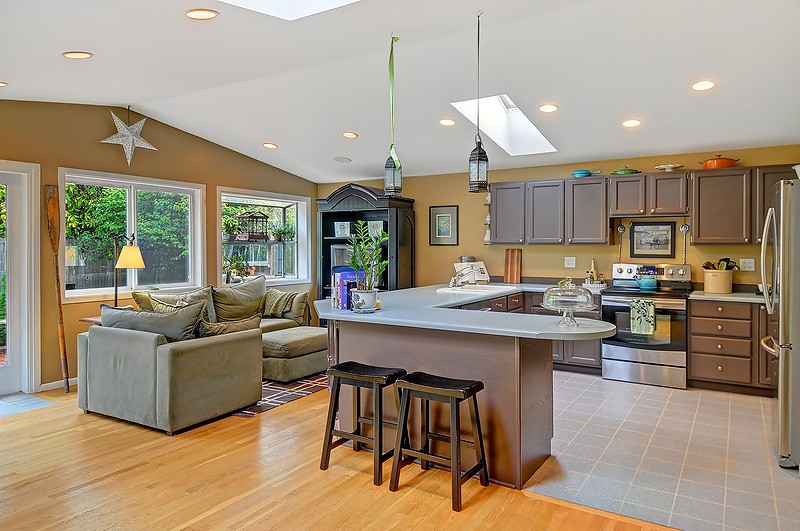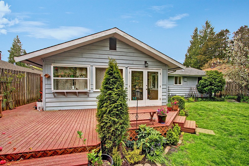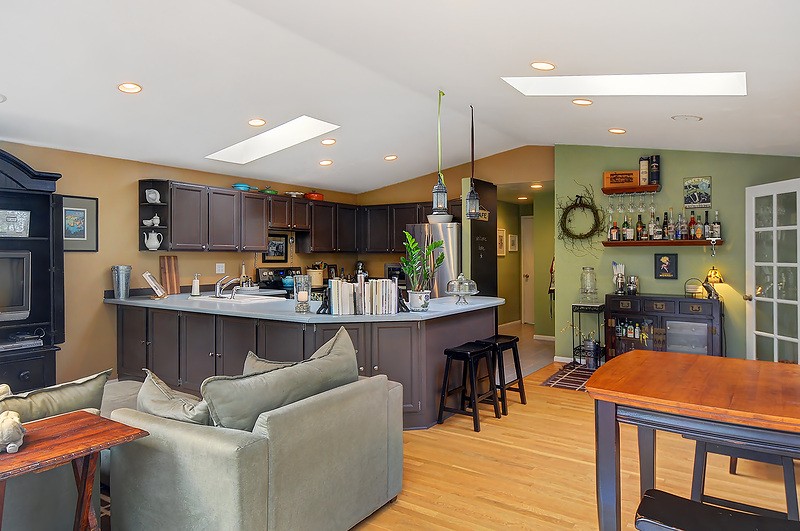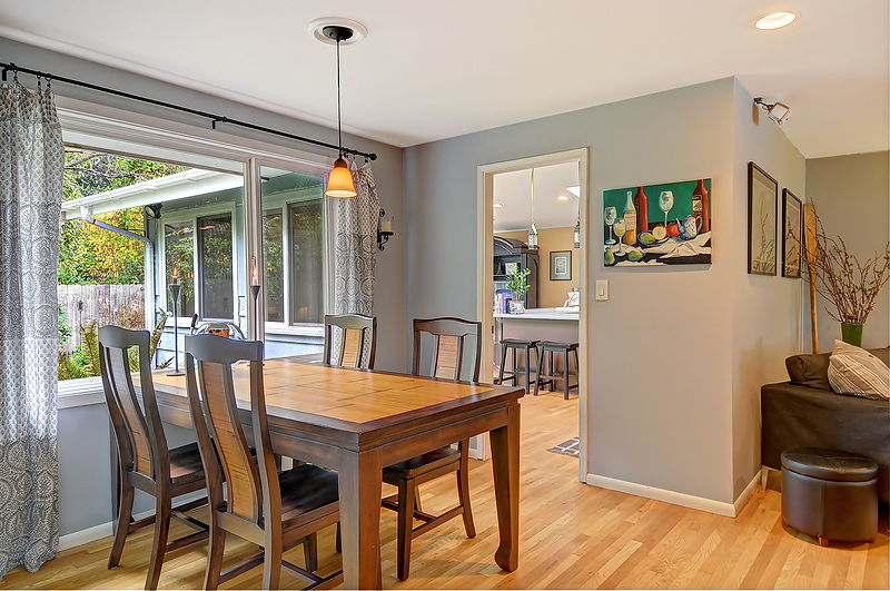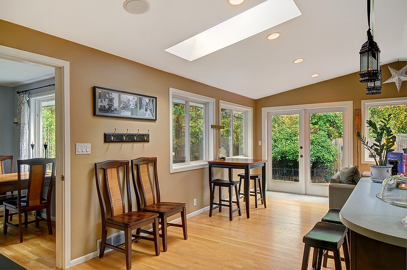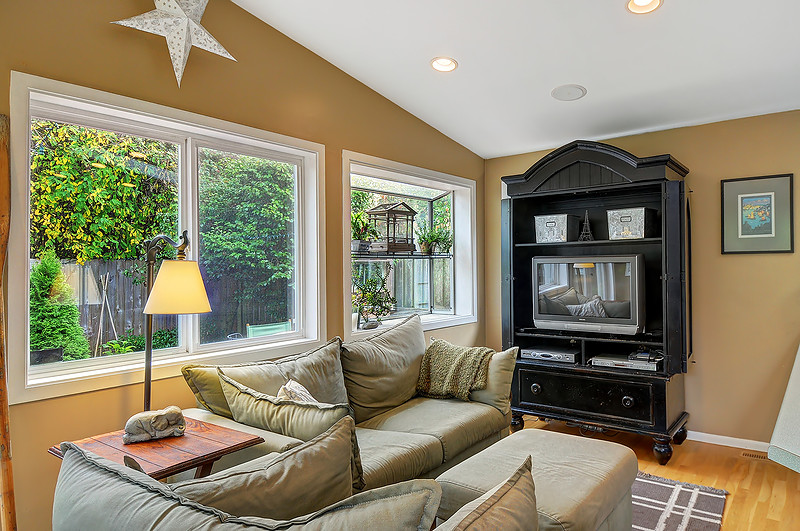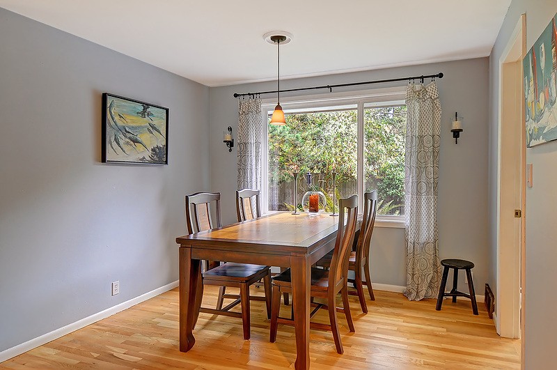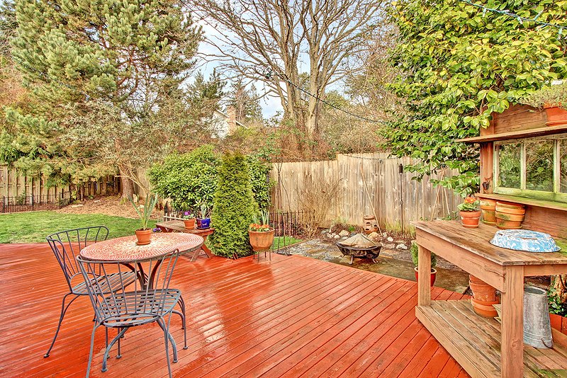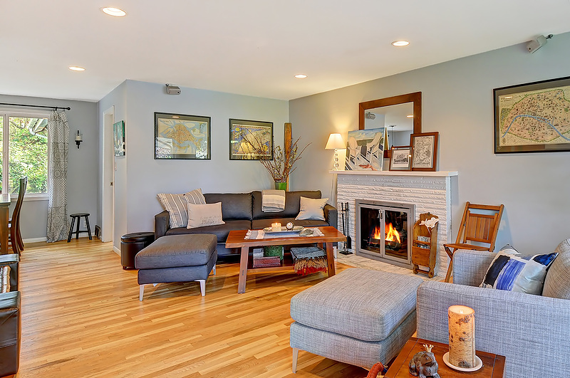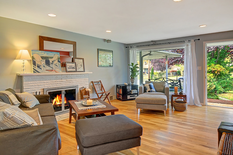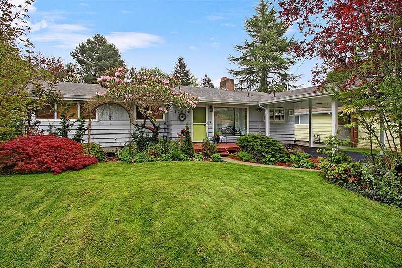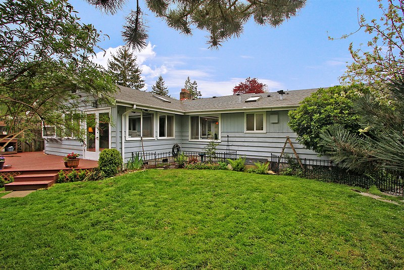 Beautifully remodeled sun drenched entry level Cape Cod. Quiet dead end street surrounded by lush landscaping. This home has such a welcoming feel with hardwood flrs throughout, living room with manteled firelplace. Great room with vaulted ceiling and a kitchen any cook would love. French doors open to a deck for entertaining. Bathrooms with custom tile & vanities, granite, heated flr. Utility room, brand new carport and driveway. Quiet area stroll to Carkeek park just 10 minutes away.