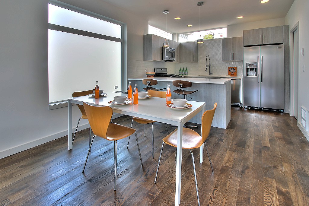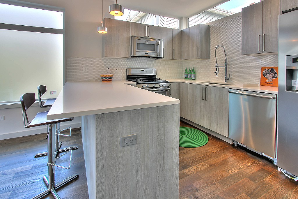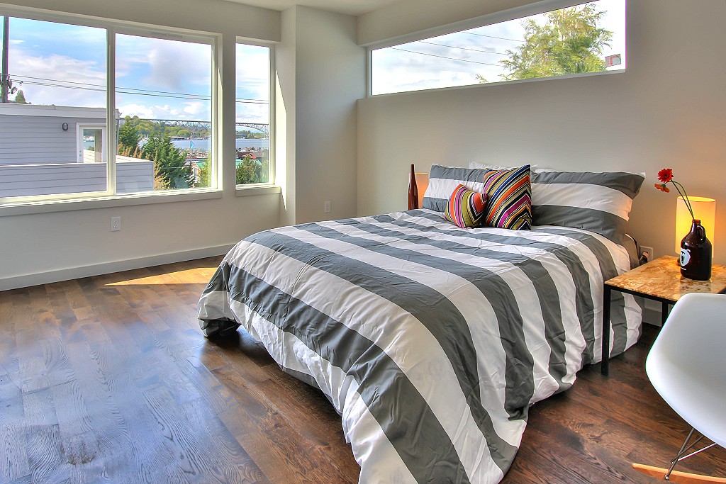 Sleek Modern Home by Premier Seattle Builder DC Granger,Inc. Located in the Highly Desirable & Exciting Eastlake Neighborhood. Convenient to Downtown and just a few miles to Bustling South Lake Union. Large Upper Level Master Suite w/ Spa like Contemporary Bath w/ Huge Walk-In Shower & Walk-In Closet. Hardwoods Throughout! Light & Bright Open Living Level,SS appliances & Slab Quartz Counters. Good Size 2nd Bedroom. Private Roof Top Terrace w/ Sweeping Views of Lake Union, Downtown & Mountains.